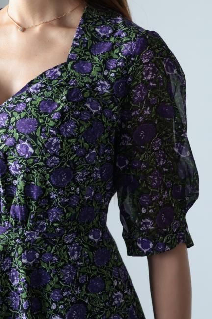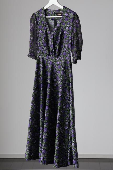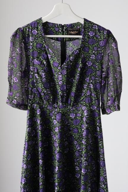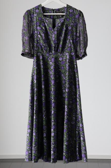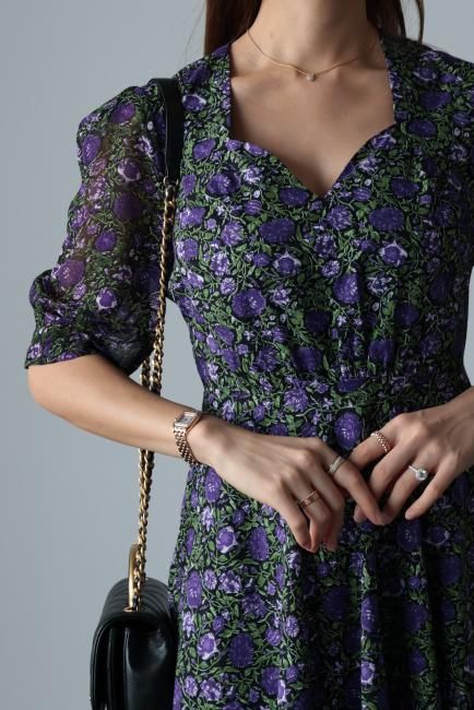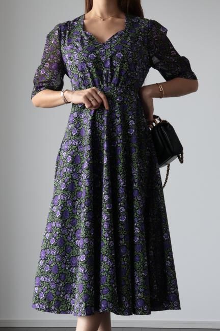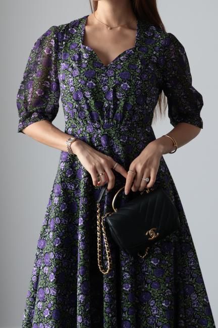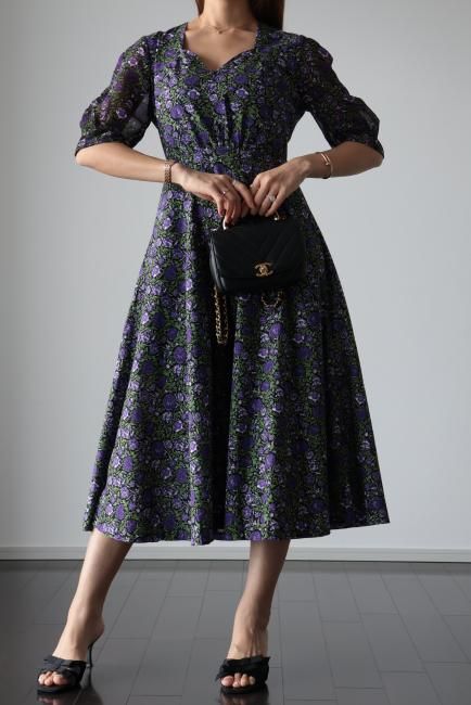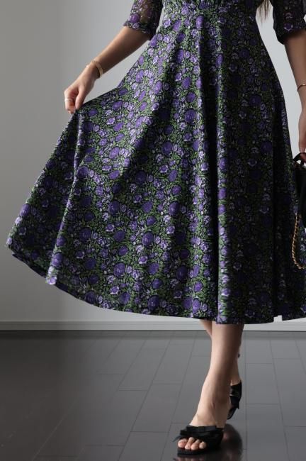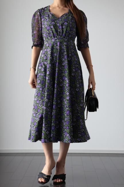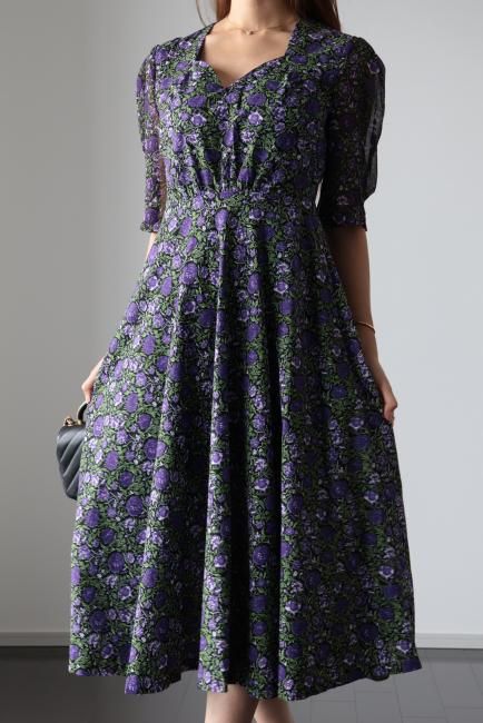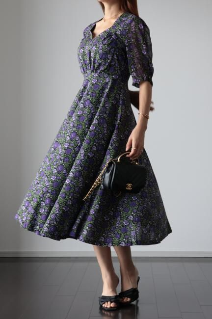 パーブル×ブラックの花柄がvintageライクな印象を演出してくれるフレアワンピース❤︎
