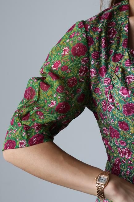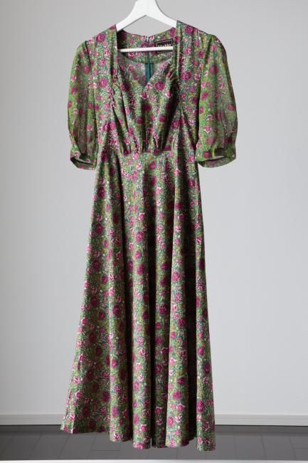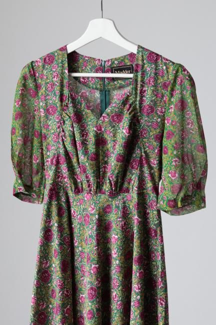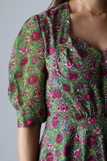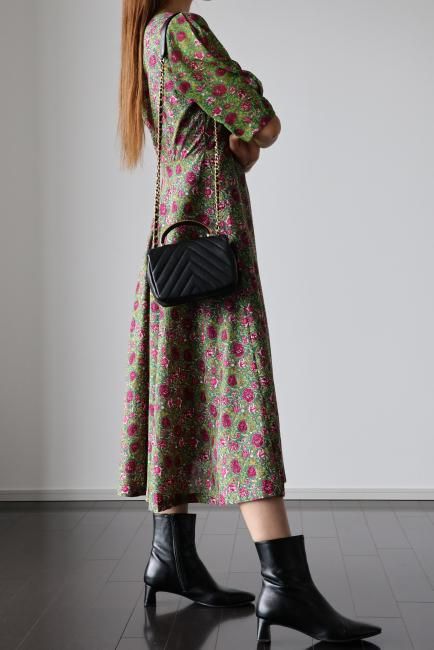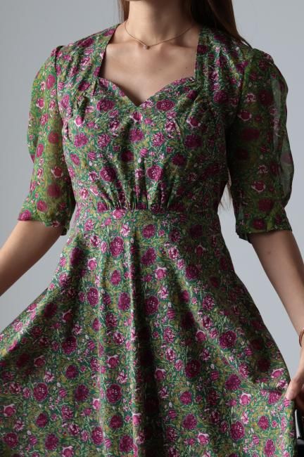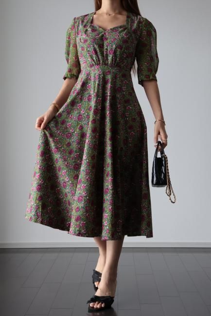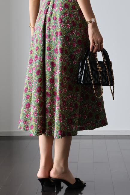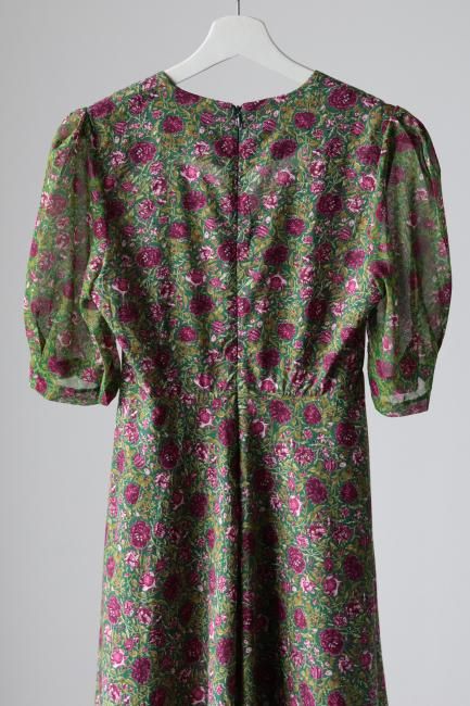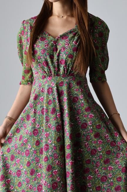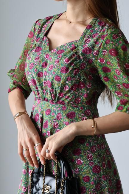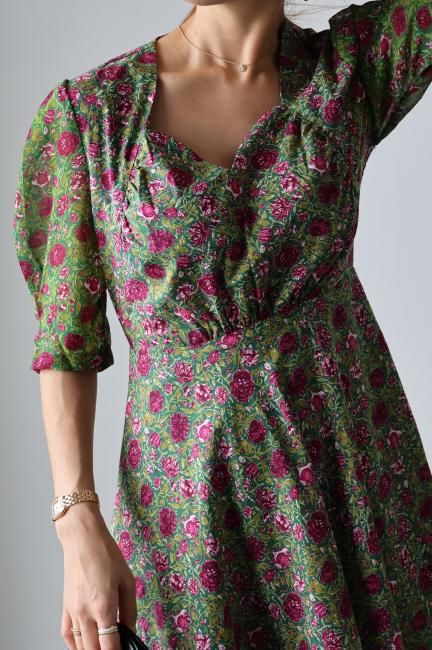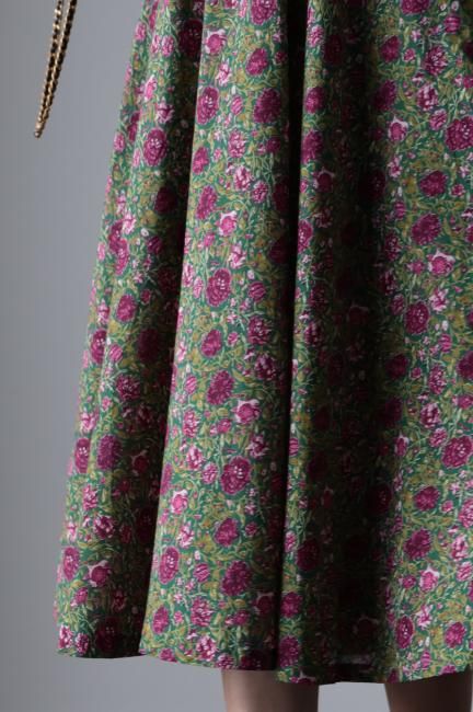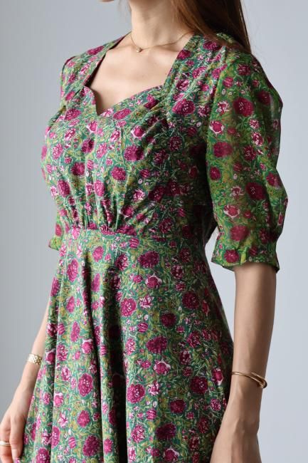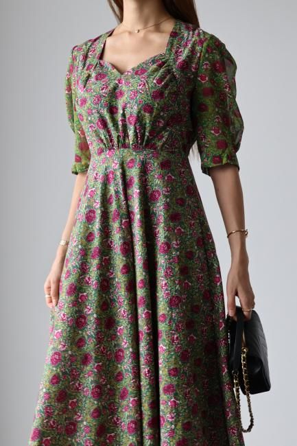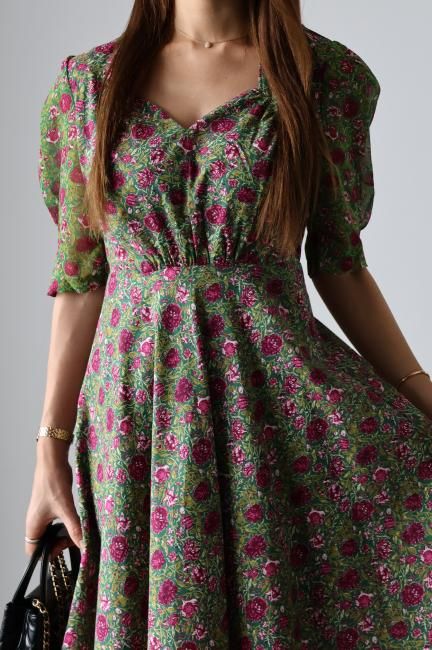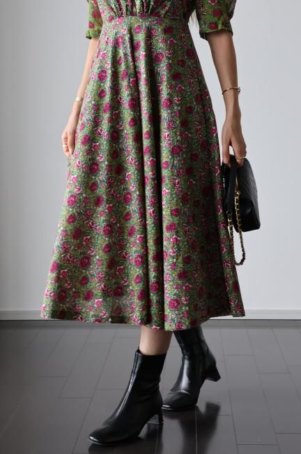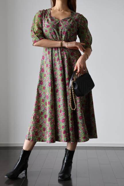 グリーン×レッドの花柄がvintageライクな印象を演出してくれるフレアワンピース❤︎