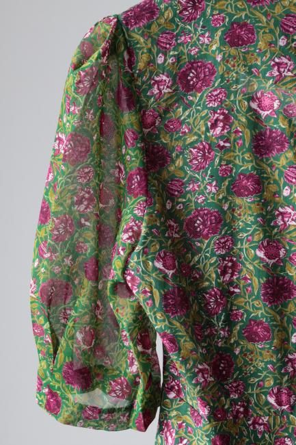 袖にはシフォン生地を使用しており柔らかく動きのある女性らしいシルエットに。