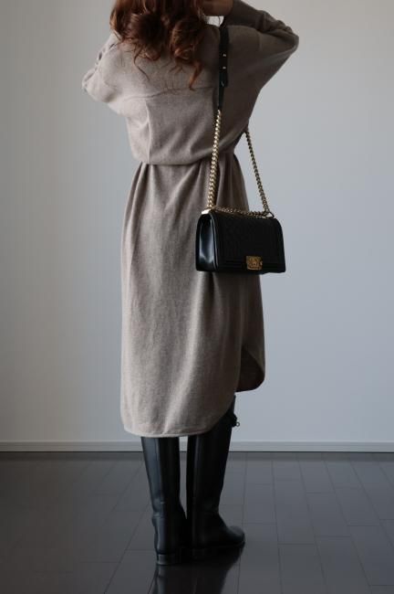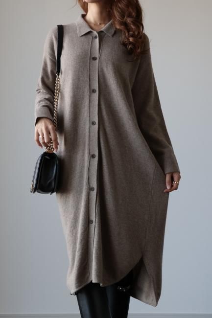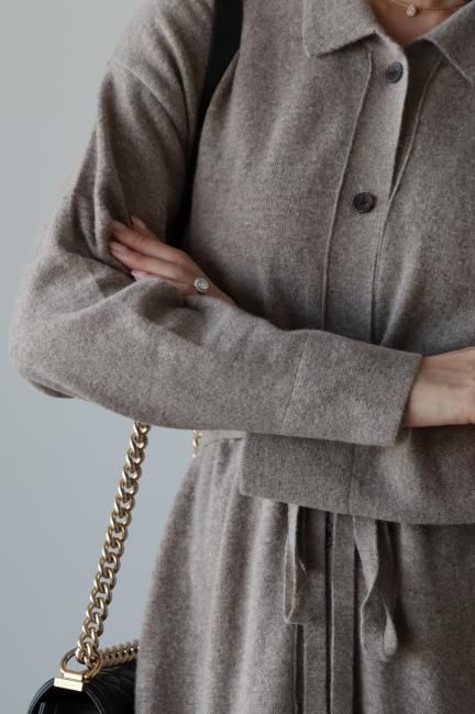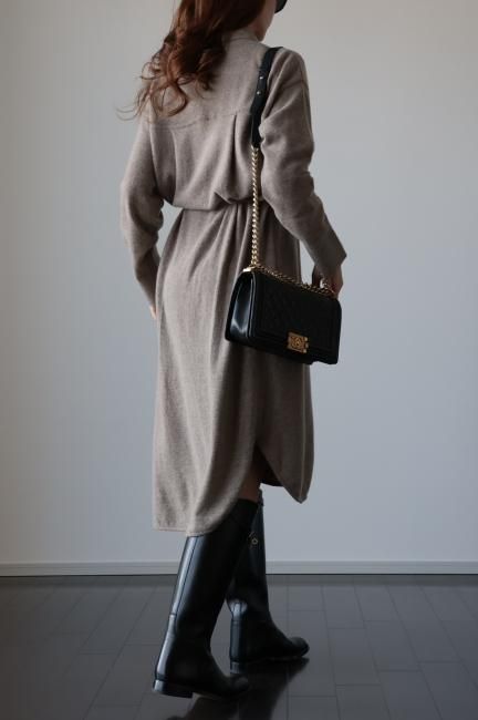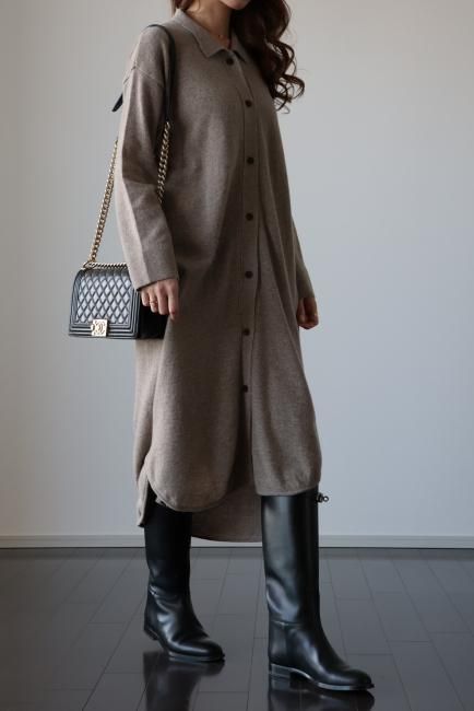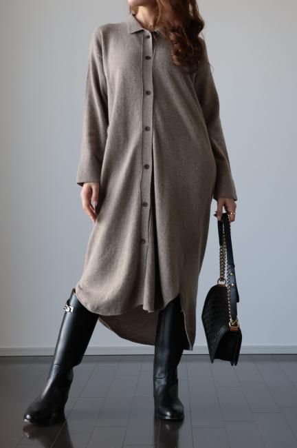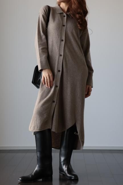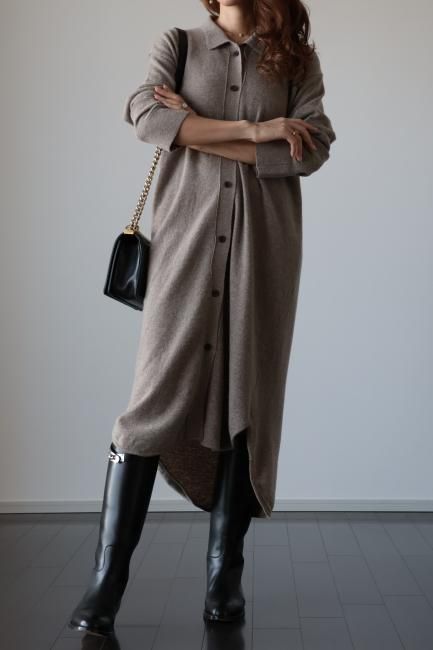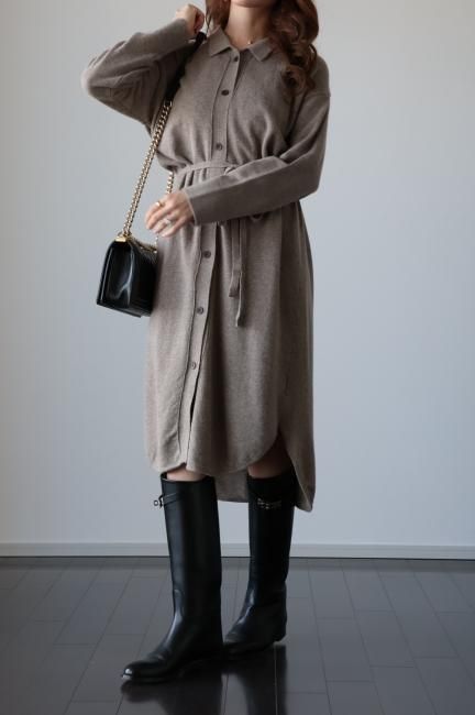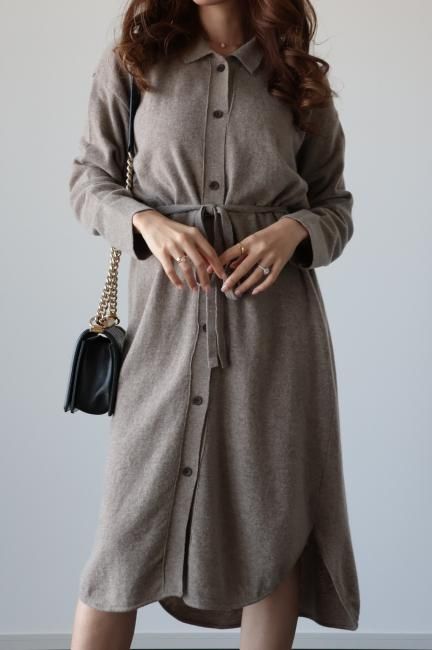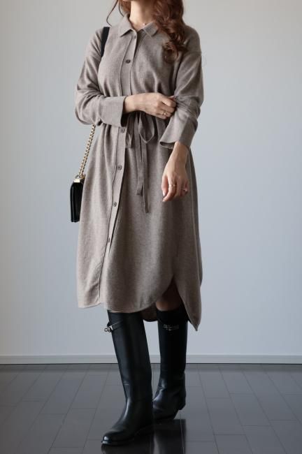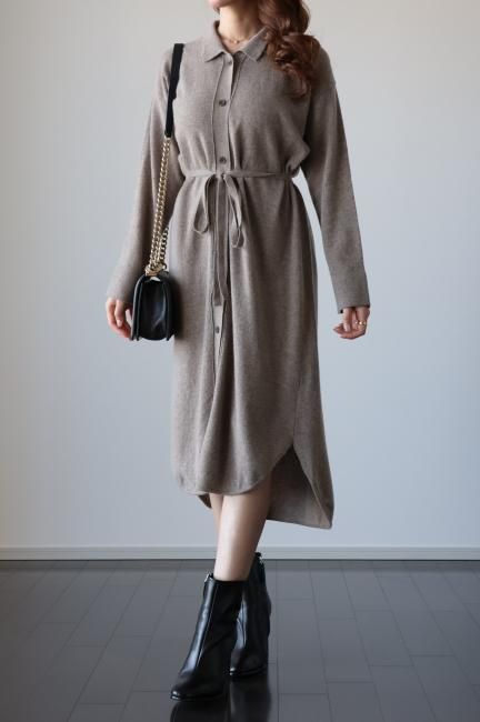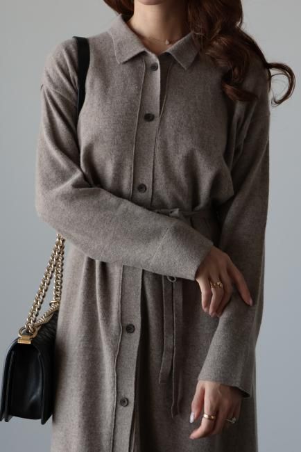 cashmere mix buttondown knit dress (ribbon set) / brown