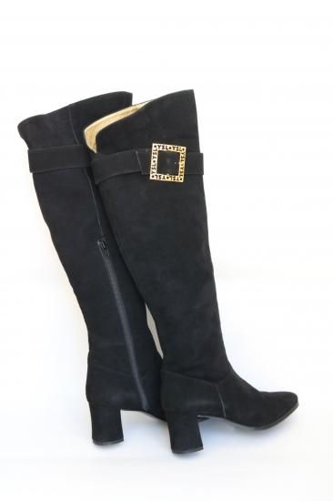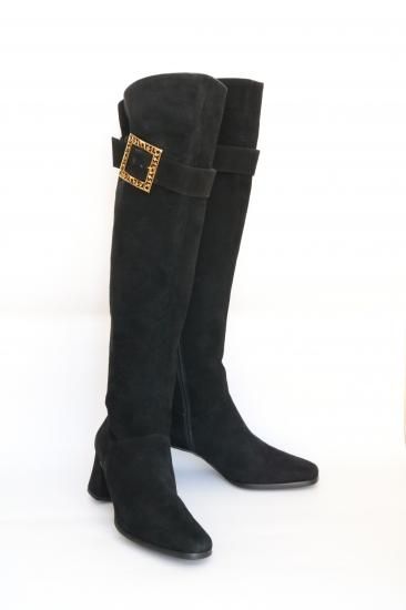 ¡Úvintage¡ÛYves Saint Laurent / die cutting YSL logo buckle suede long heel boots