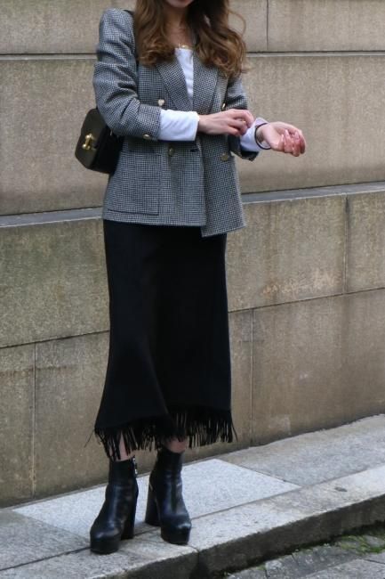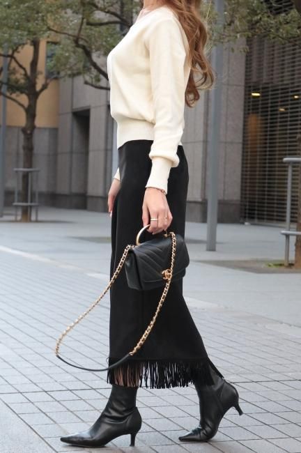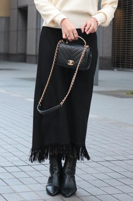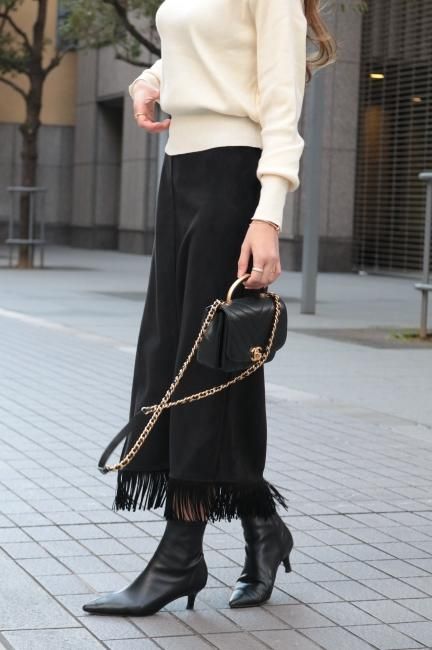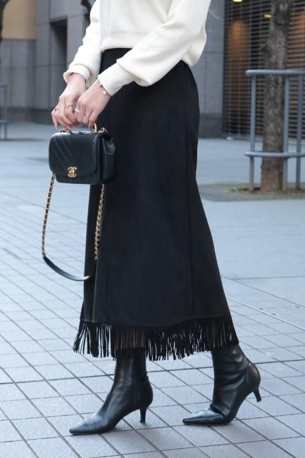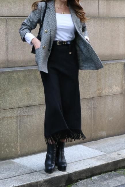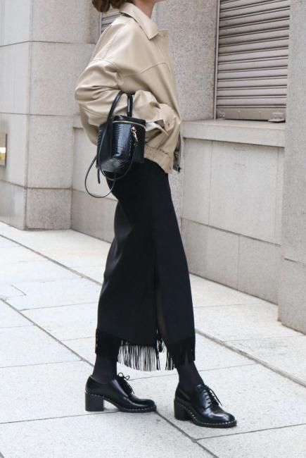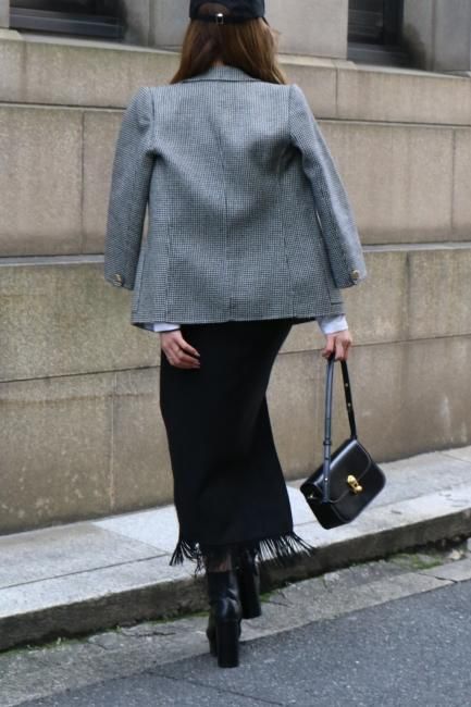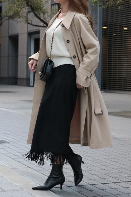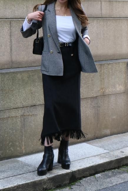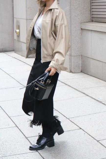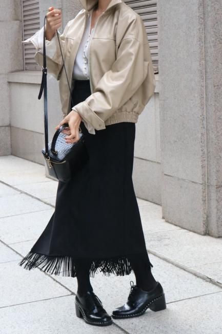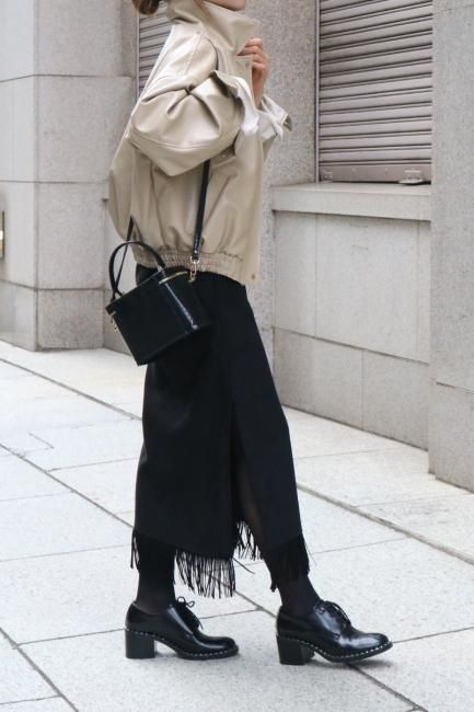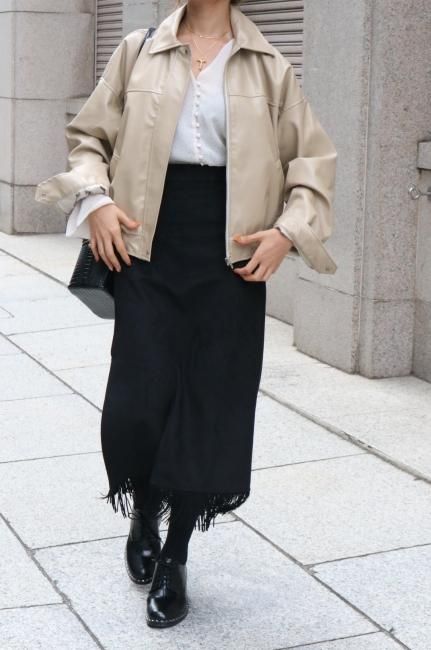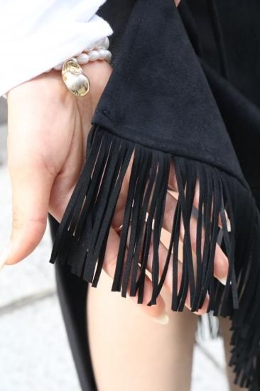 歩くたびにフリンジがひらひらと揺れてコーデの主役を飾ってくれるモードな一枚です。