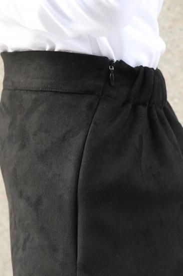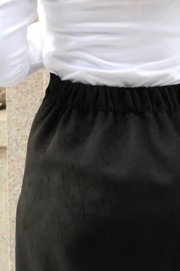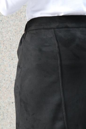 ウエストは後ろのみゴム、サイドにはジップが付いておりますので着脱もしやすく、伸縮性のあるスエード生地ですので着心地も良いです。