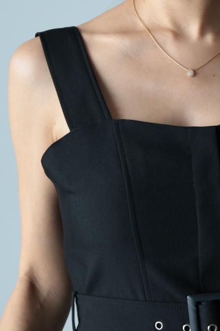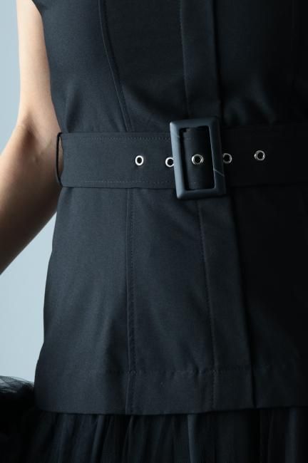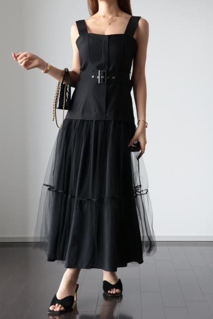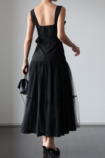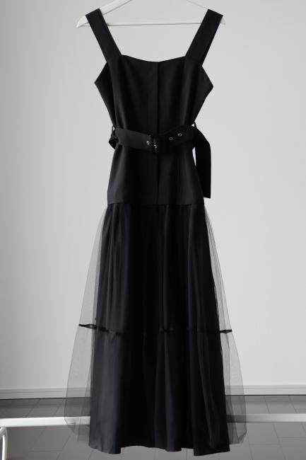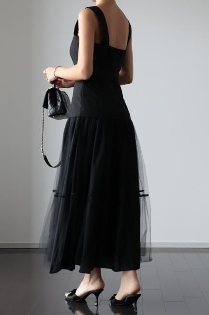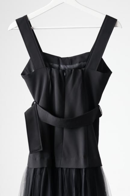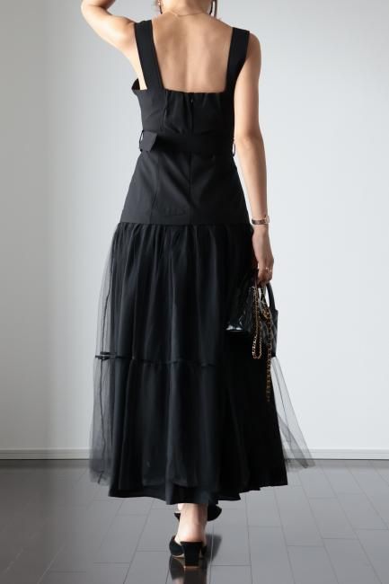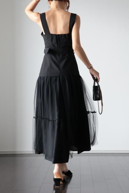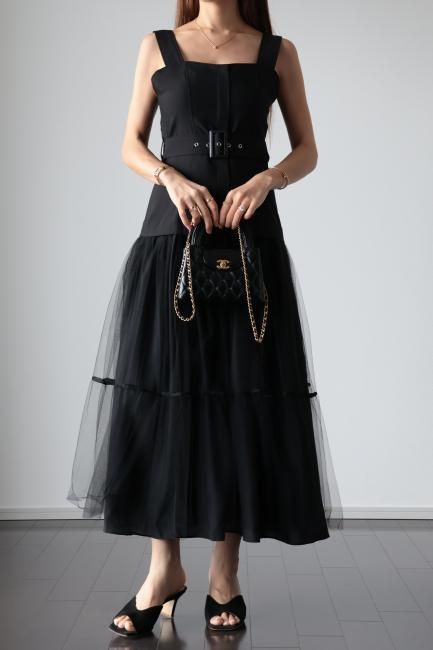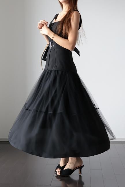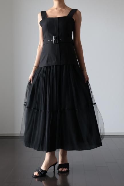 ティアードラインのチュールがドッキングされた異素材mixのビスチェワンピース。