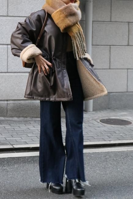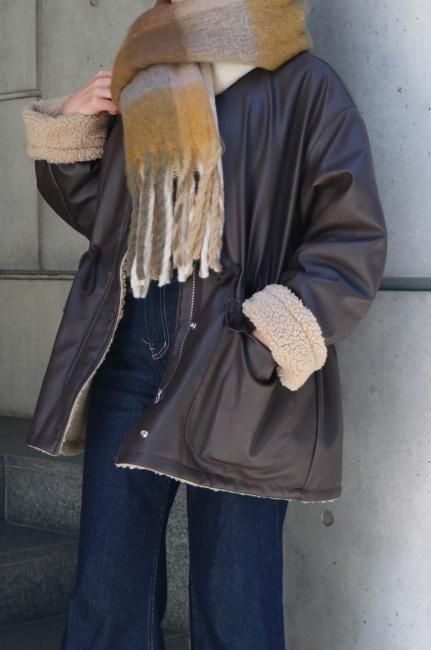 色味が可愛く、シンプルなコーデに一点プラスするだけでコーデが完成するおすすめの大判マフラーです♩