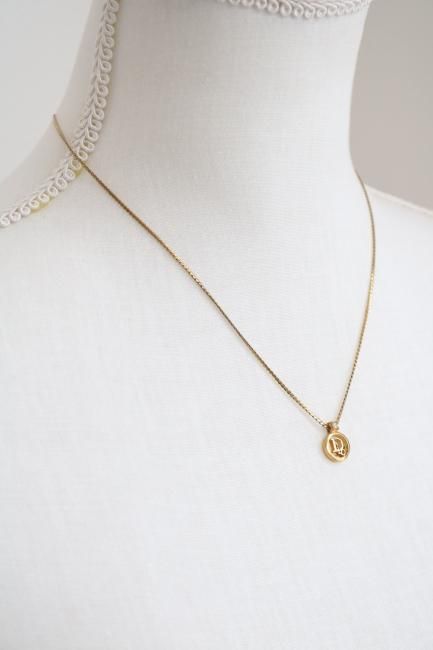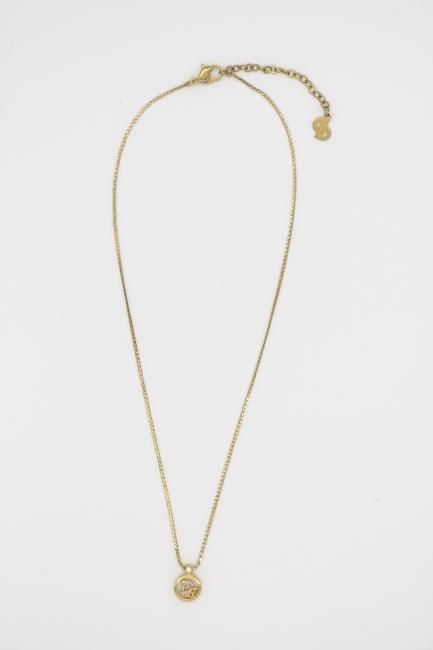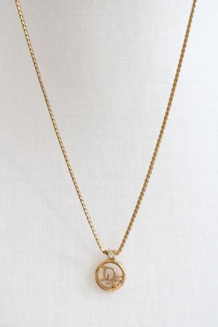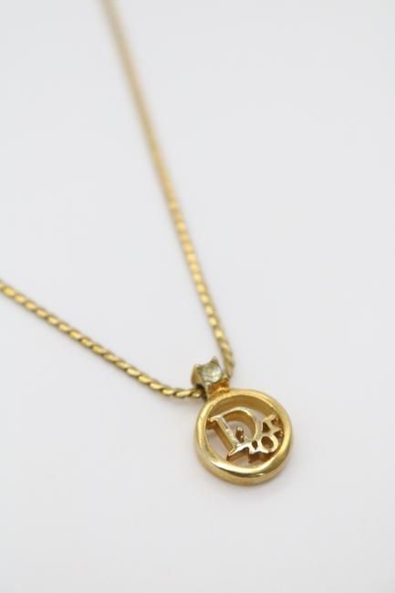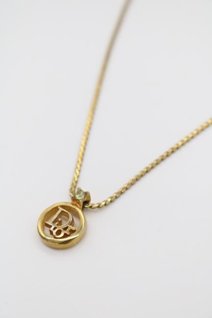¡Úvintage¡ÛChristian Dior / logo motif circle top rhinestone necklace