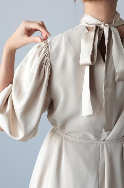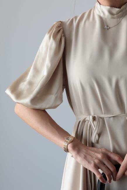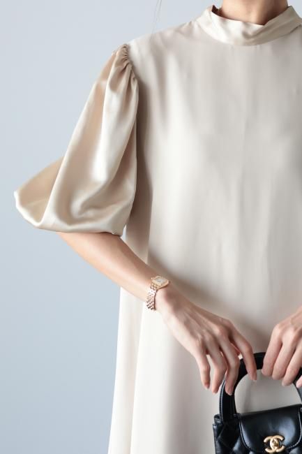 サテン切替パフスリーブ