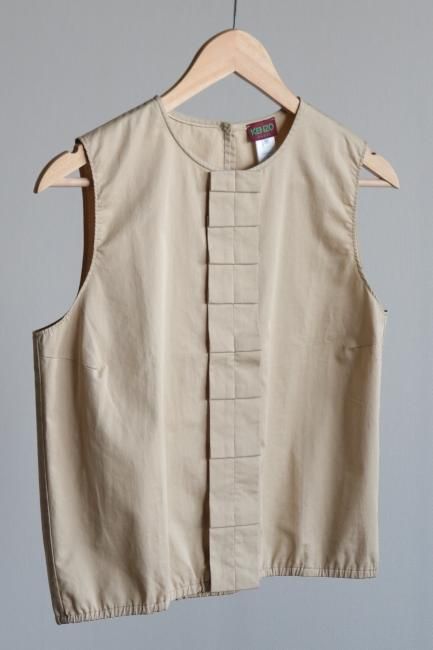 ¡Úvintage¡ÛKENZO / round neck center pleats design sleeveless cotton tops