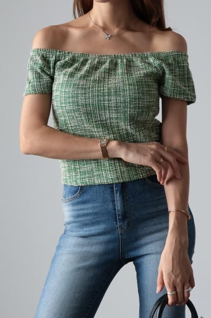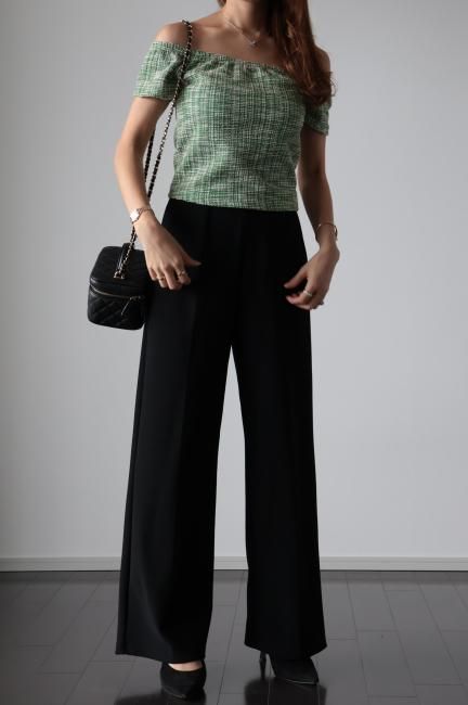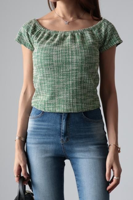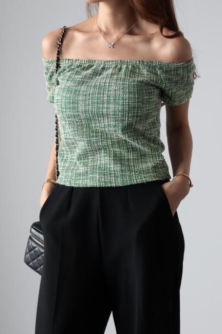 ショルダーからデコルテにかけてぐるっとゴムが入っており、そのまま着ても、オフショルダーtopsとしてもスタイリングしていただける2way仕様です。
