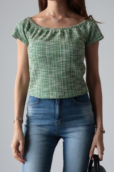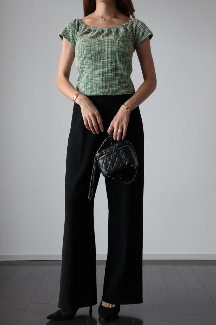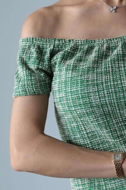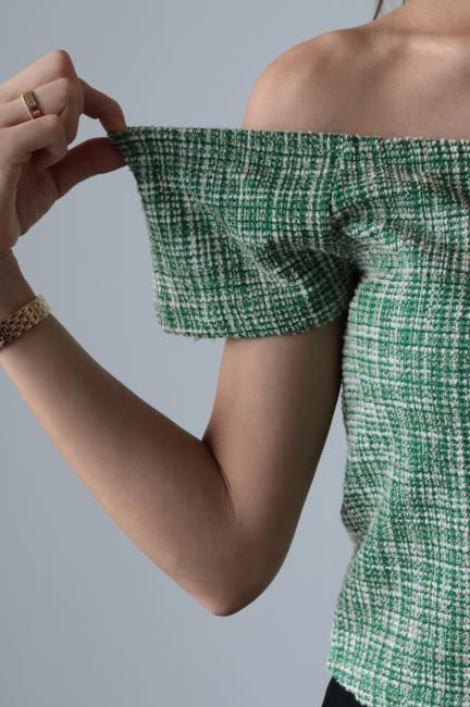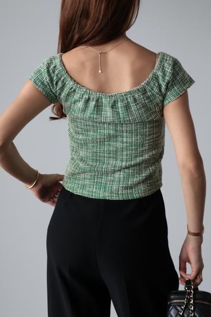 ラメ糸が折り込まれた柔らかなツイード生地感がポイント。