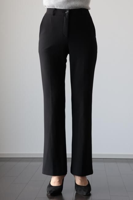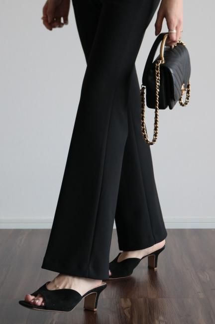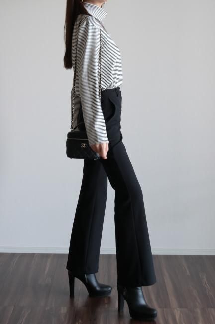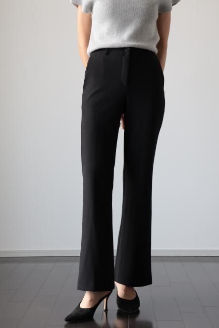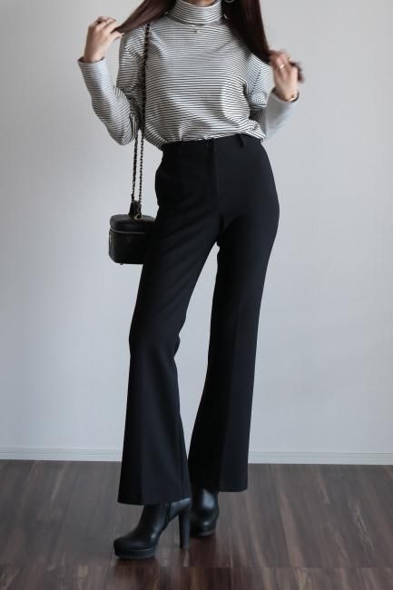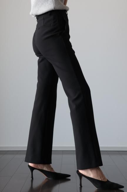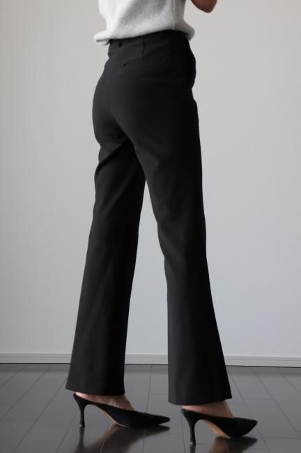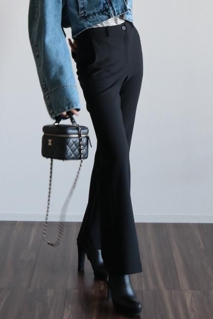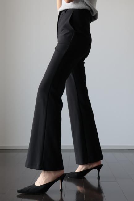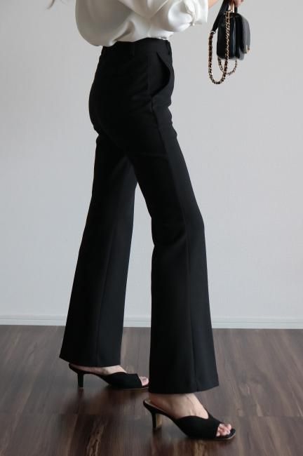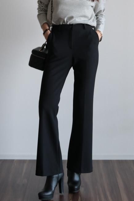 センタープレスに少しフレアなシルエットで足長効果もあり、綺麗めコーデからモードなスタイルまで