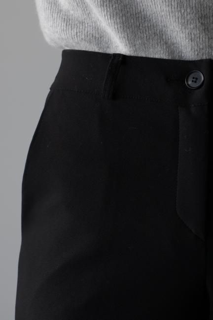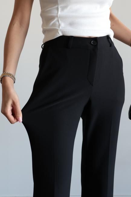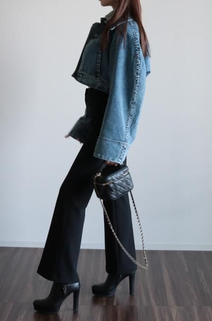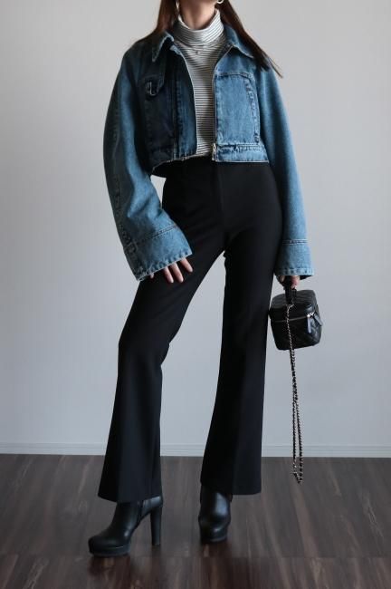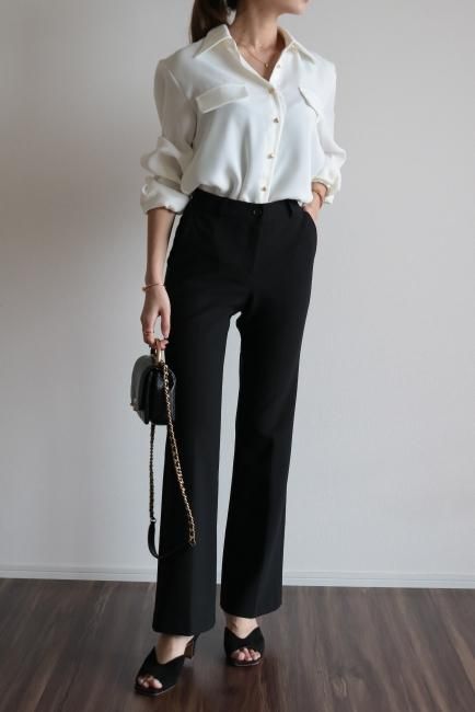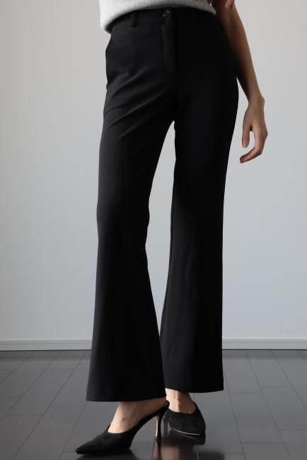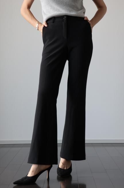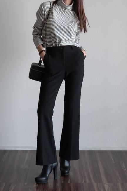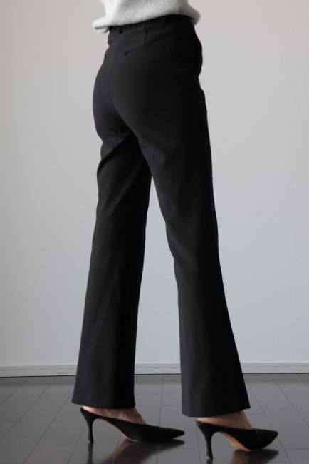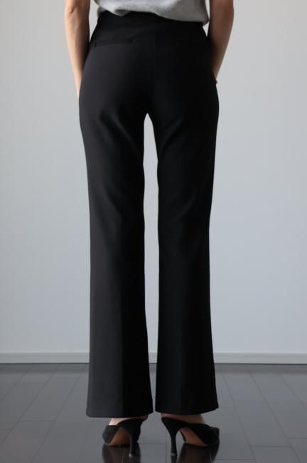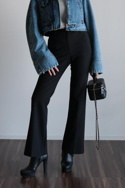センタープレスに少しフレアなシルエットで足長効果もあり、綺麗めコーデからモードなスタイルまで