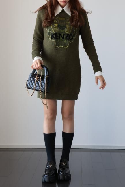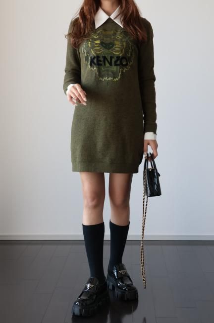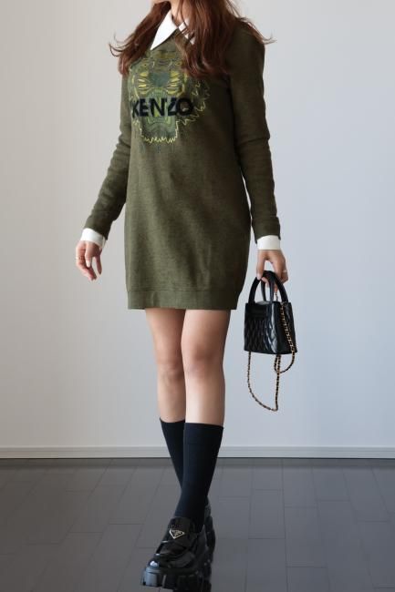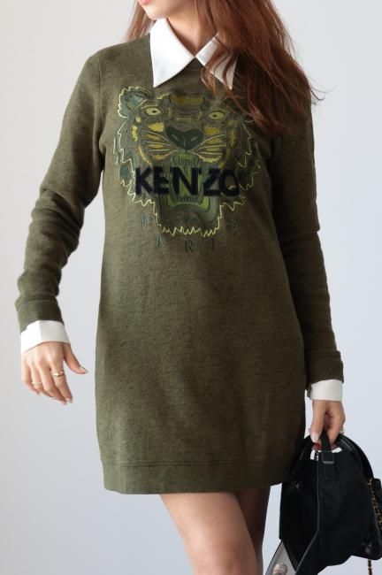 ¡ÚUSED¡ÛKENZO / tiger embroidery round neck sweatshirt dress