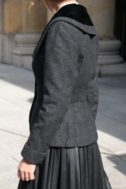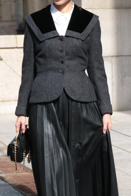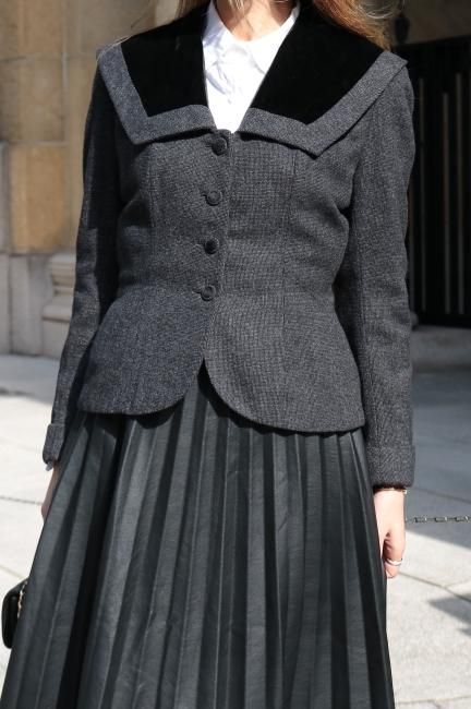 ¡Úvintage¡Û90's velour square collar peplum short jacket