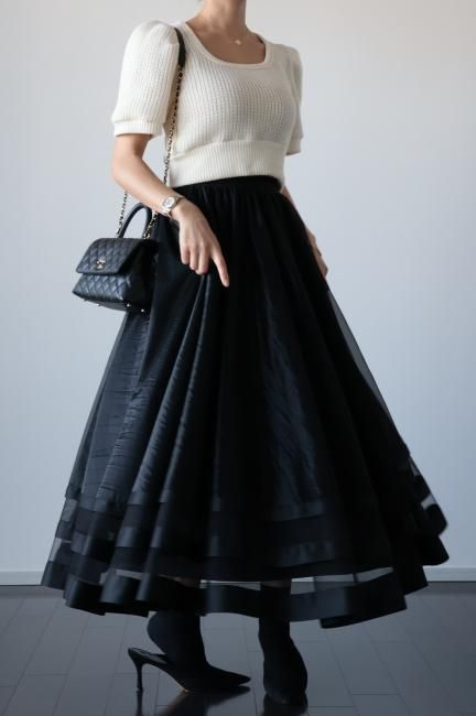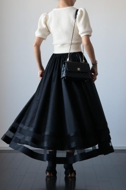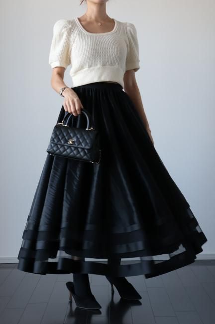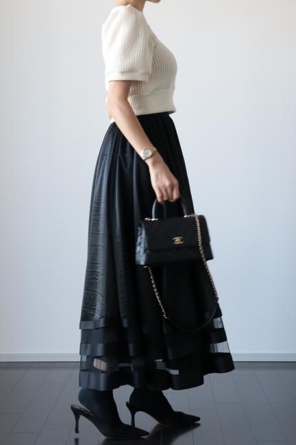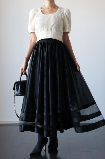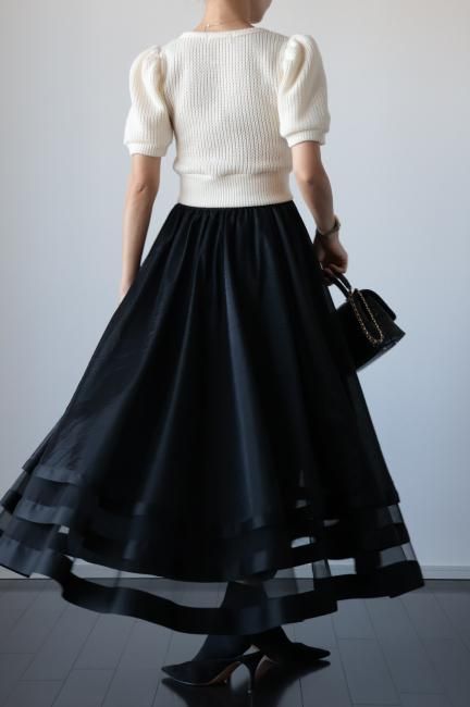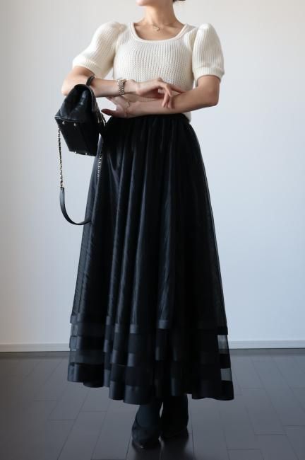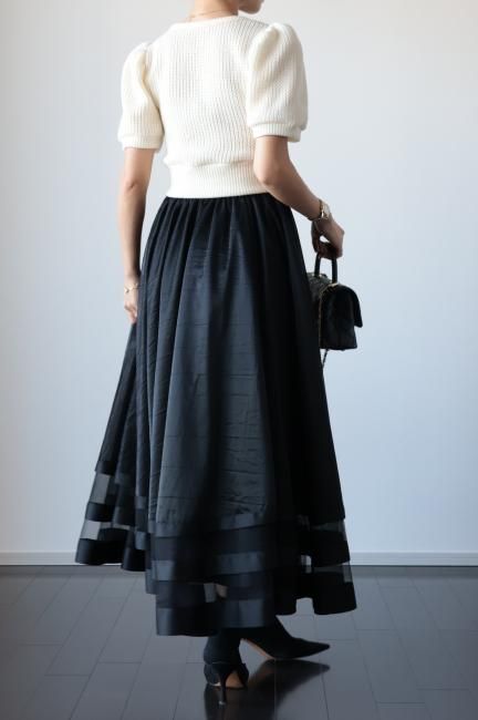 【MAISEL】satin piping layered tulle skirt / black