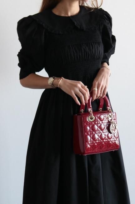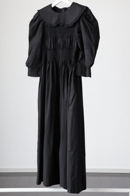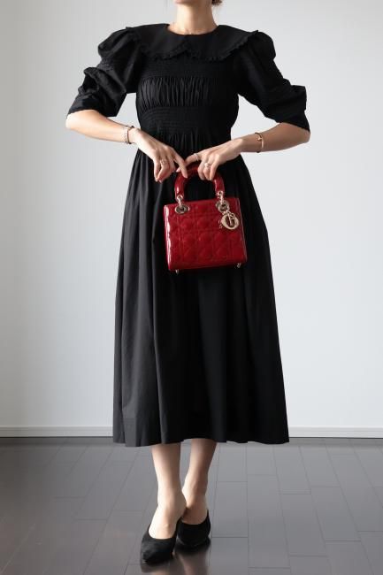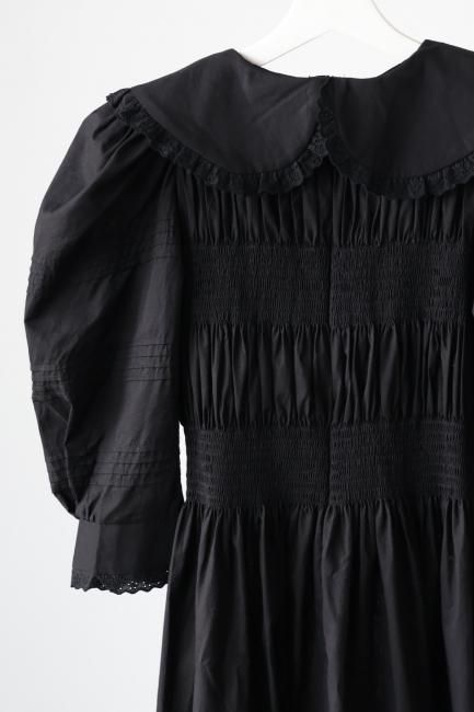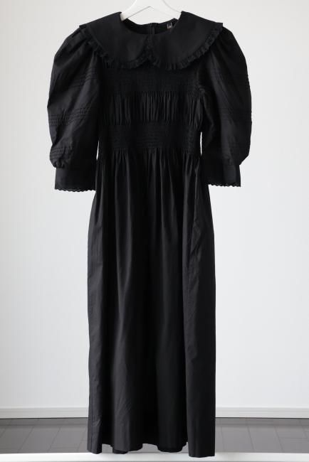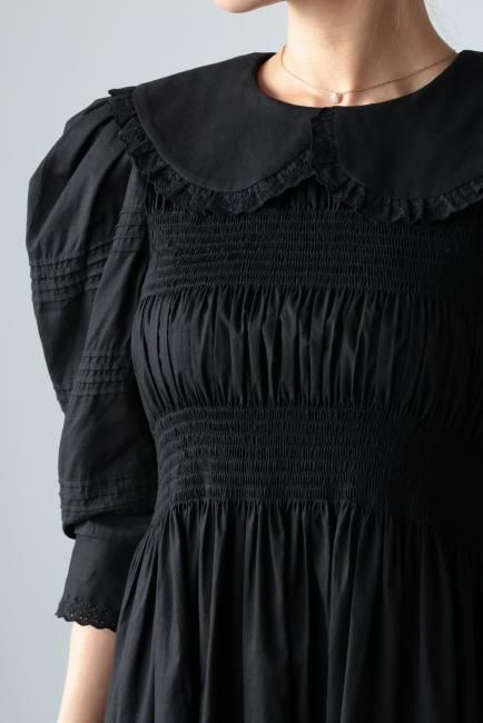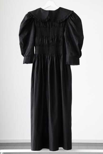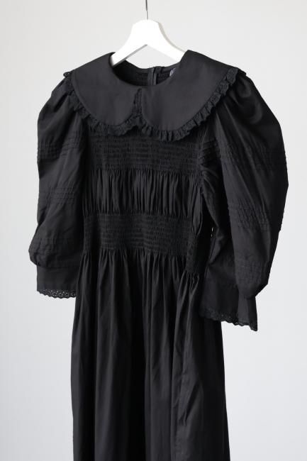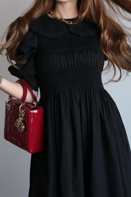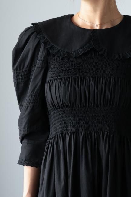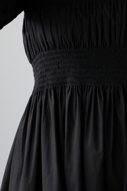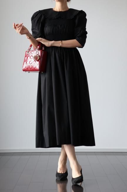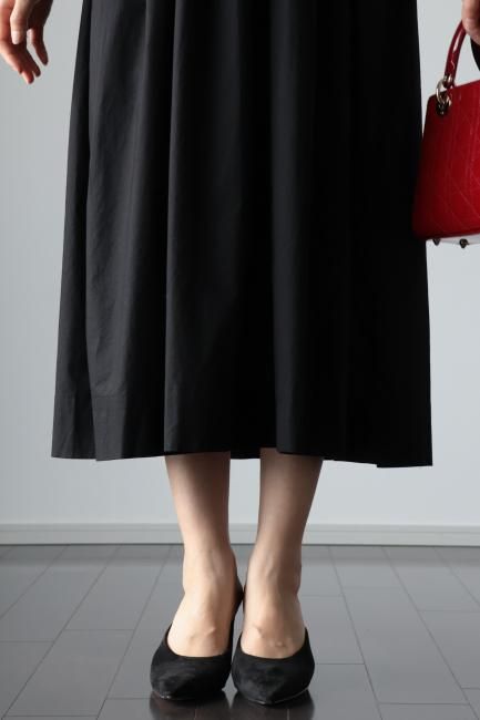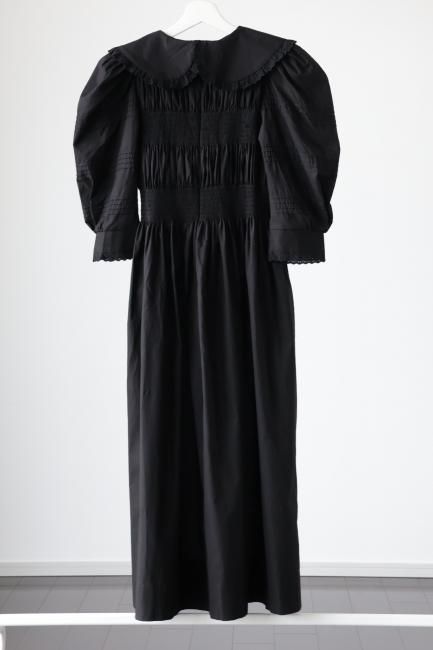 platter collar shirring flare dress / black