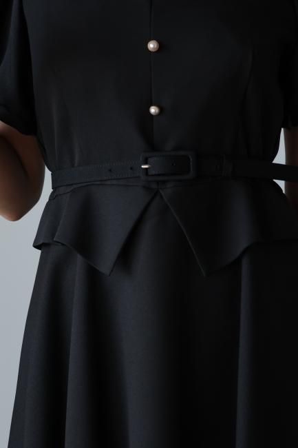 peplum docking retro flare dress / black