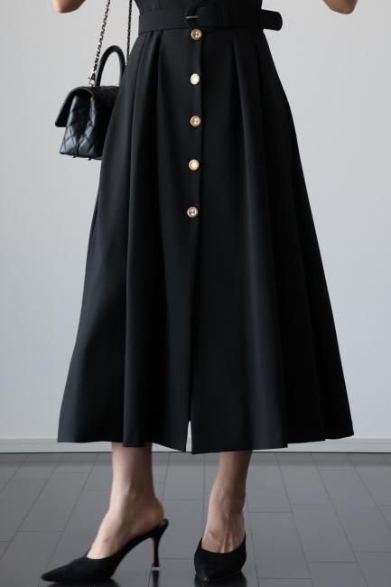 ウエストが綺麗に見えるよう 胸元とスカート部分にタックを施し、ベルトなしでもシルエットが美しく、また総裏地ですので、アイボリーでも透け感の心配はなくお召しいただけます。