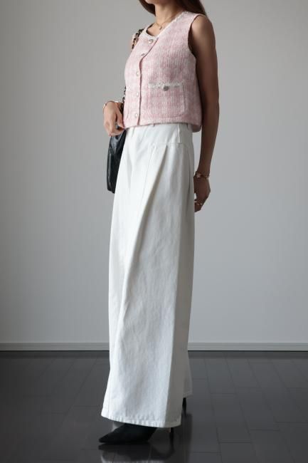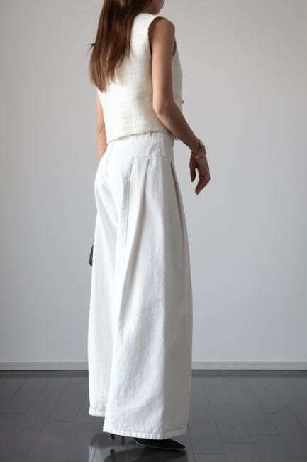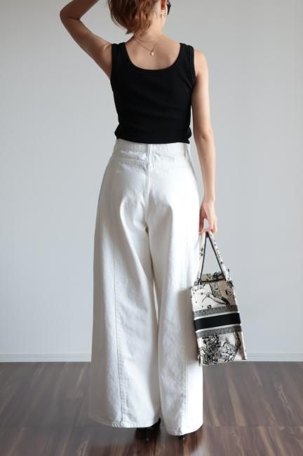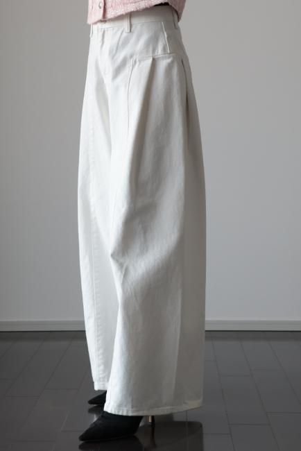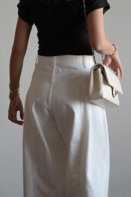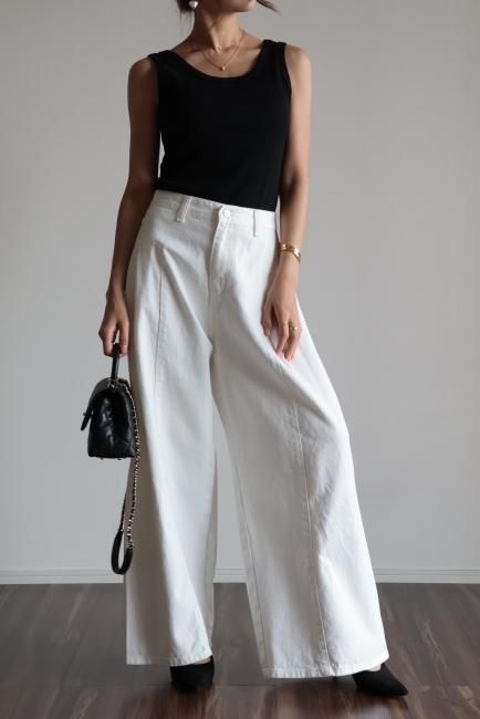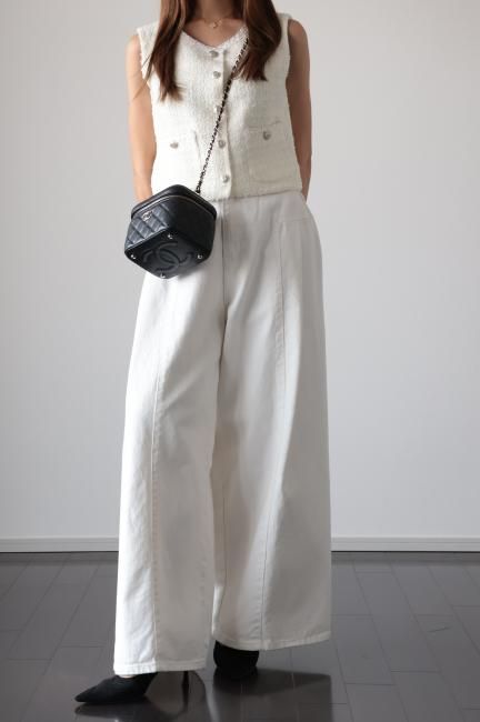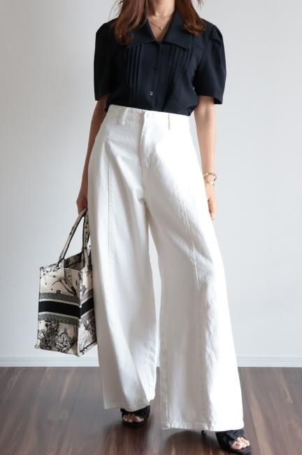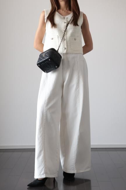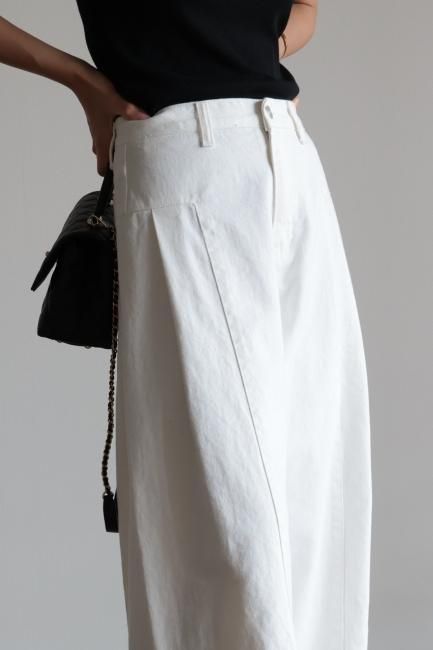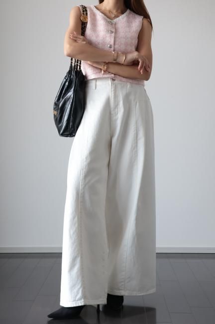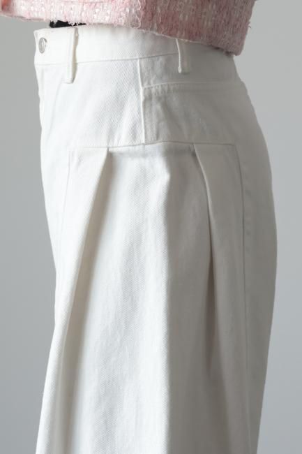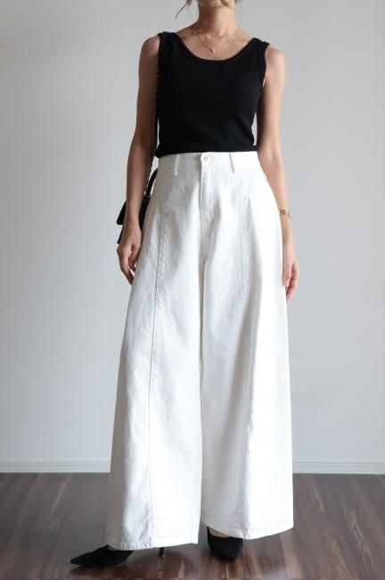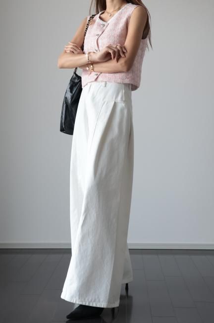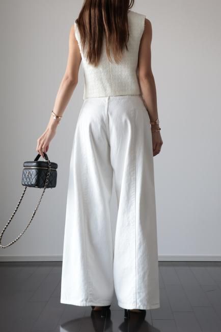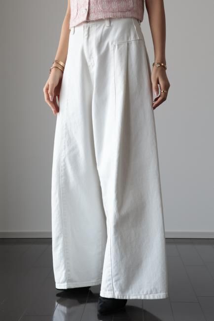 フレアに広がるシルエットがとても美しく、 また上品なホワイトカラーですので 一本あるだけで様々なシーンでスタイリングを お楽しみいただける優秀itemです。