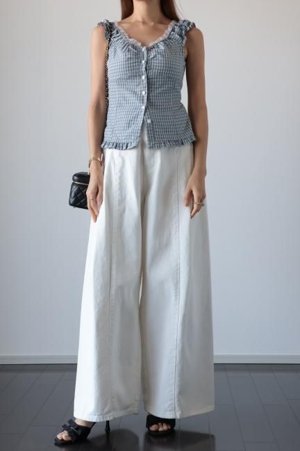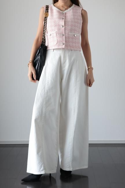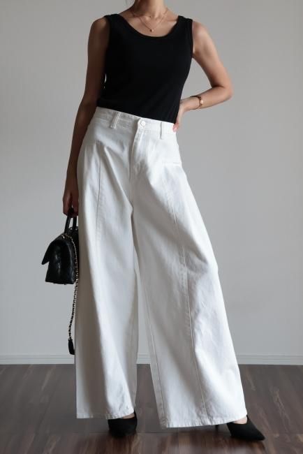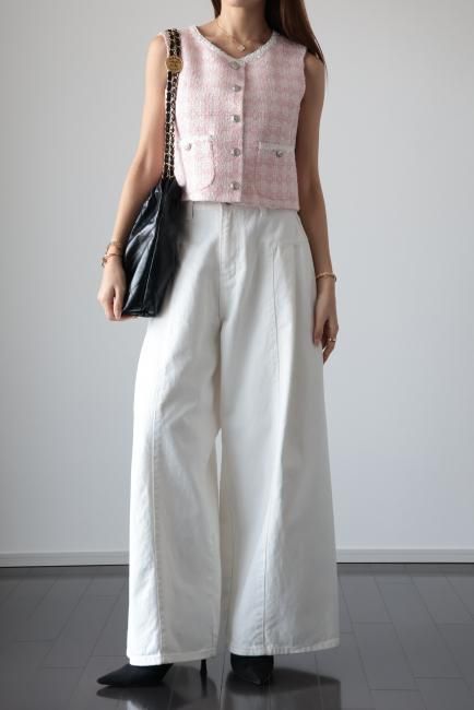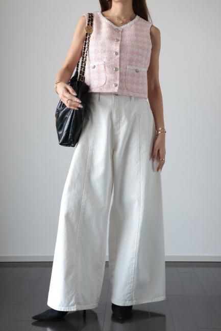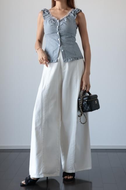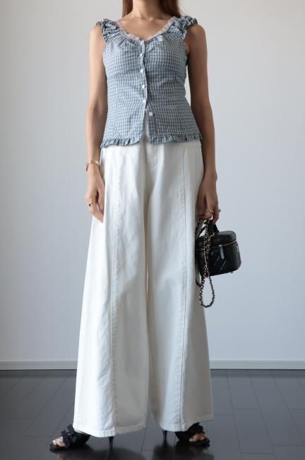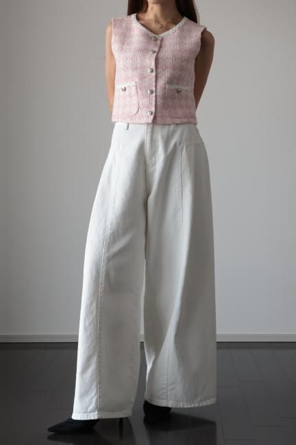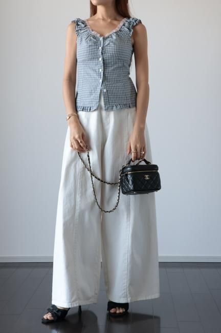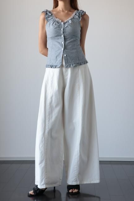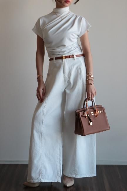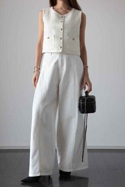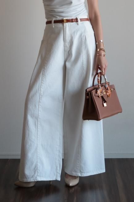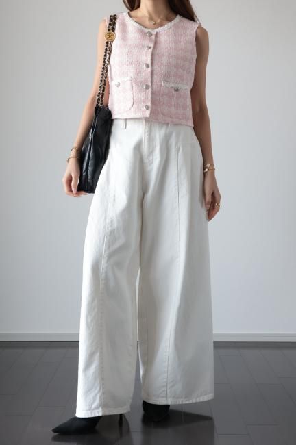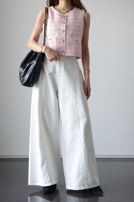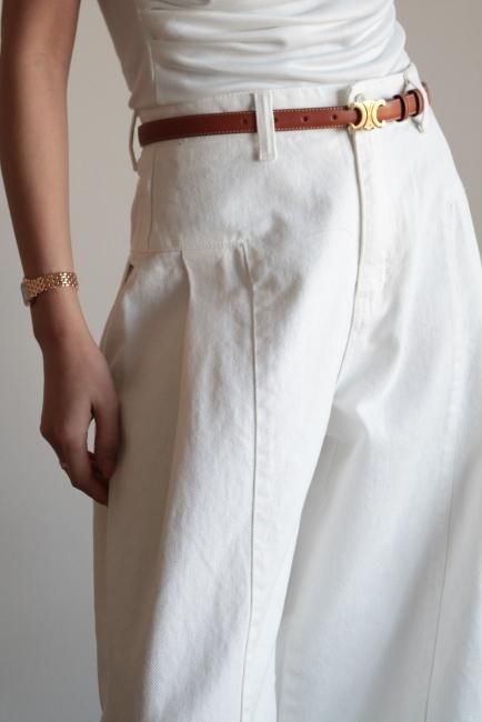フレアに広がるシルエットがとても美しく、 また上品なホワイトカラーですので 一本あるだけで様々なシーンでスタイリングを お楽しみいただける優秀itemです。