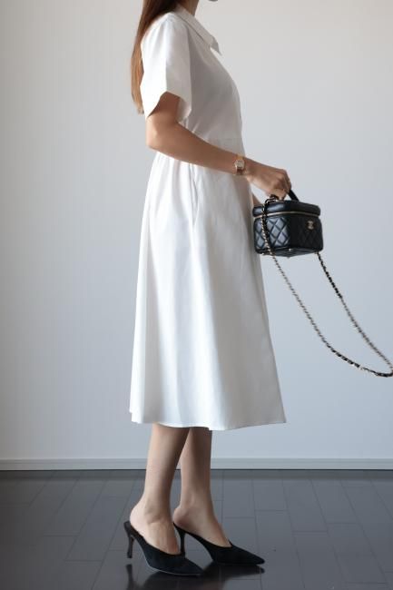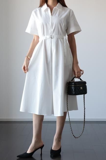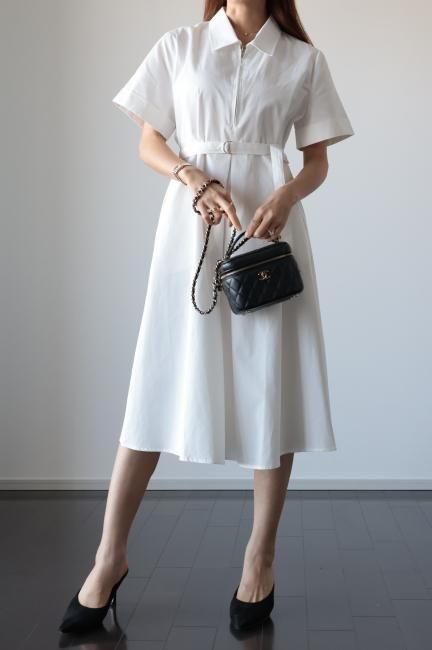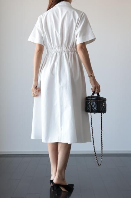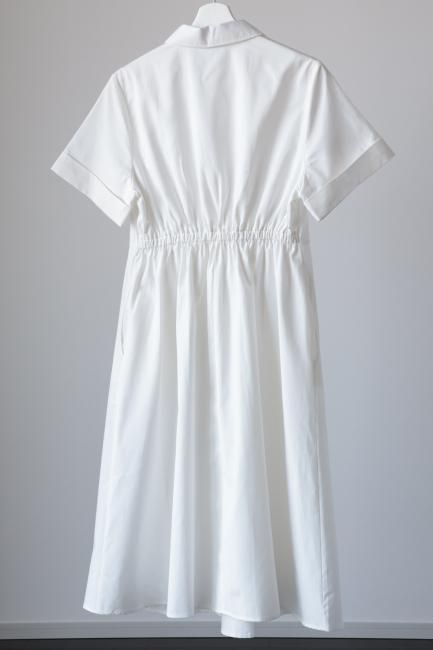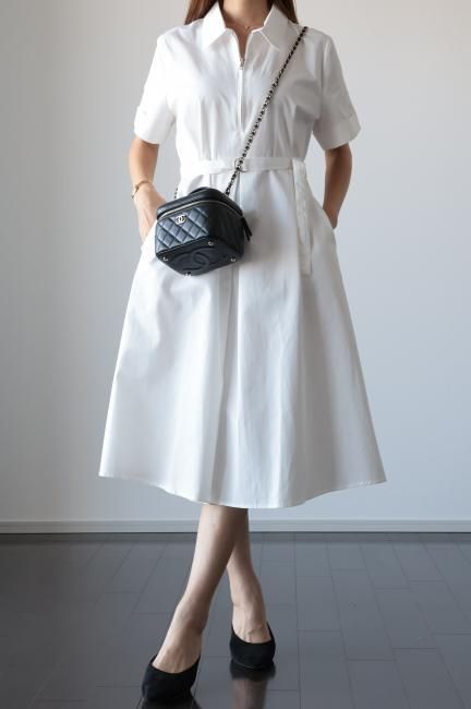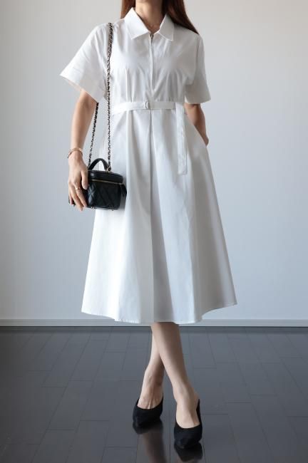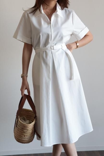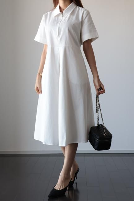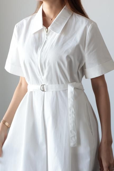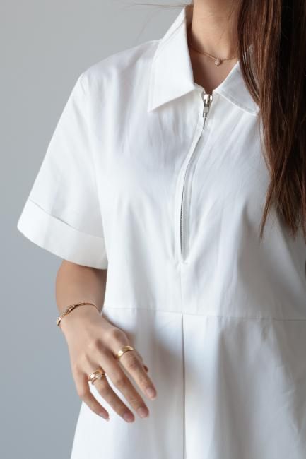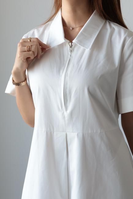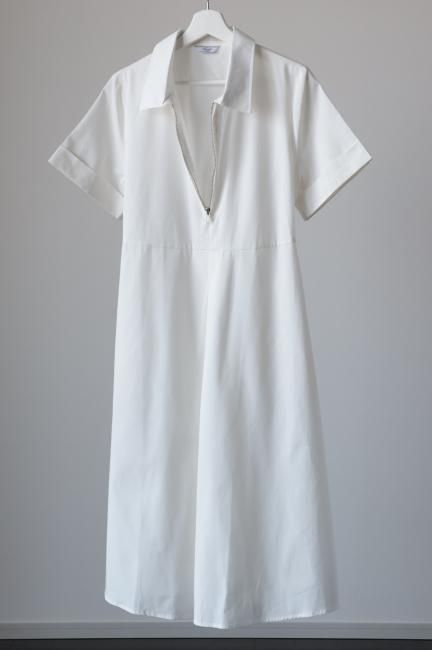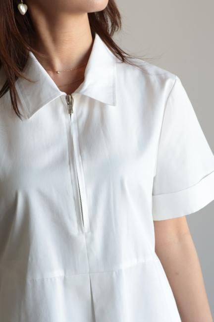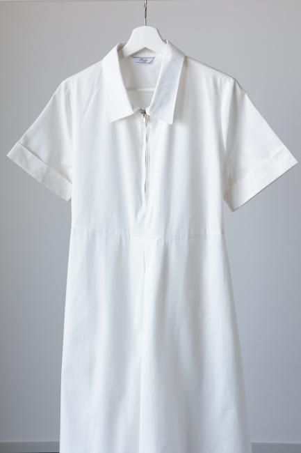 ハーフジップにボックスプリーツがポイントになった 大人カジュアルなコットンワンピース。