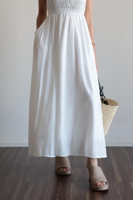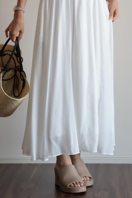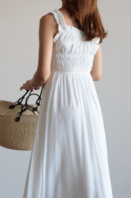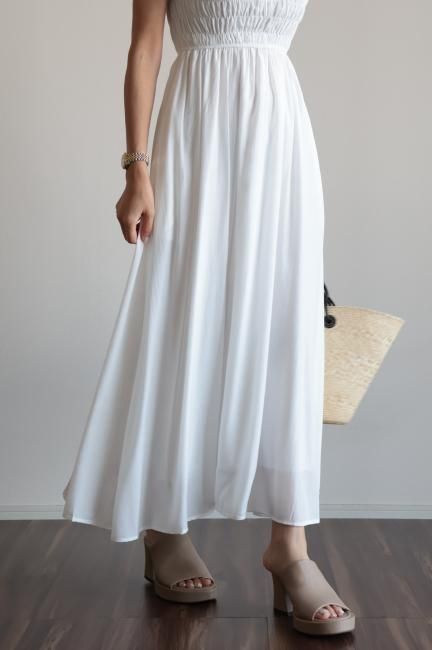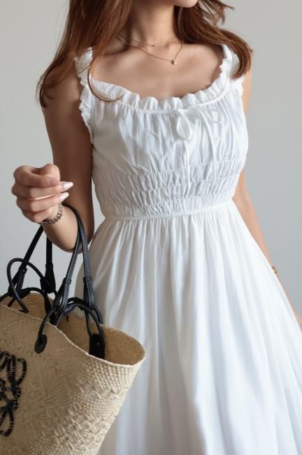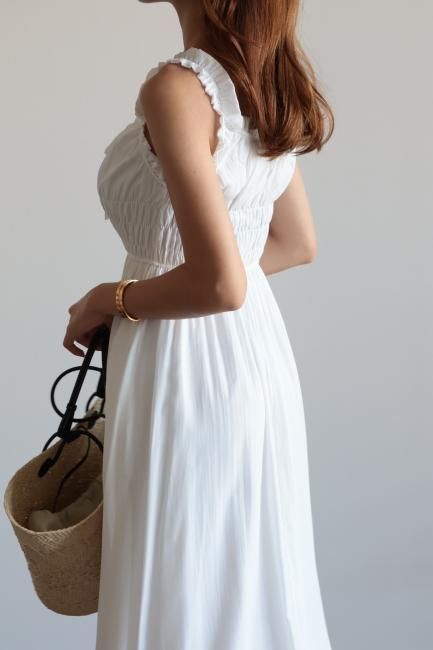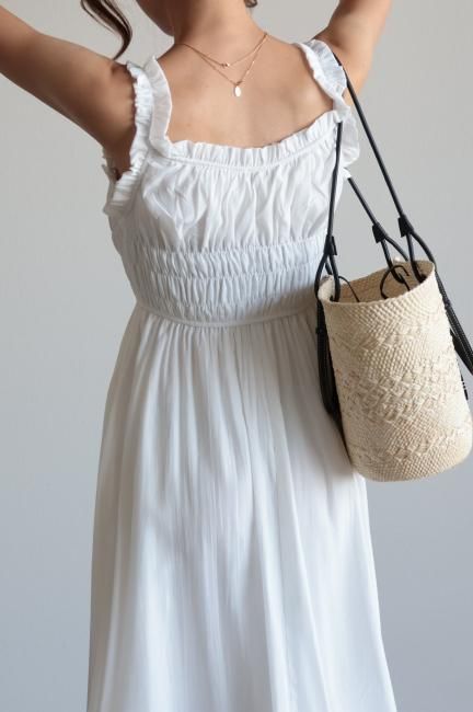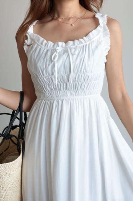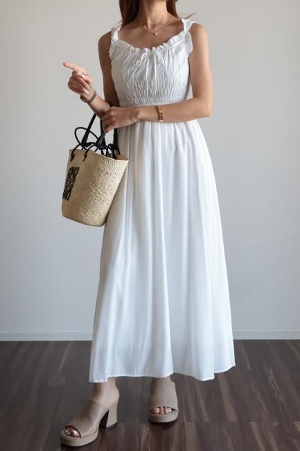 frill piping sleeveless flare dress / white