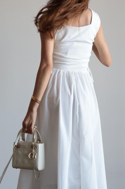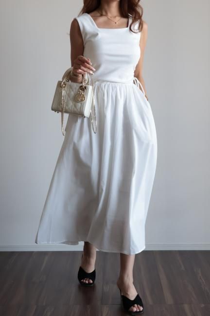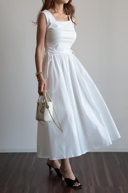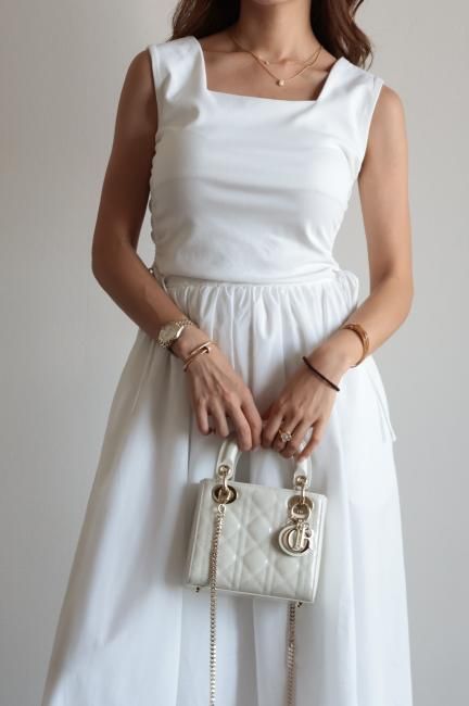 トップ部分は伸縮性のある素材で、スクエアネックがデコルテを綺麗に魅せてくれます。