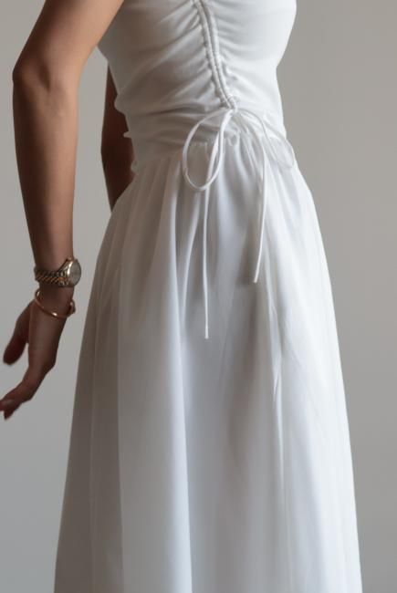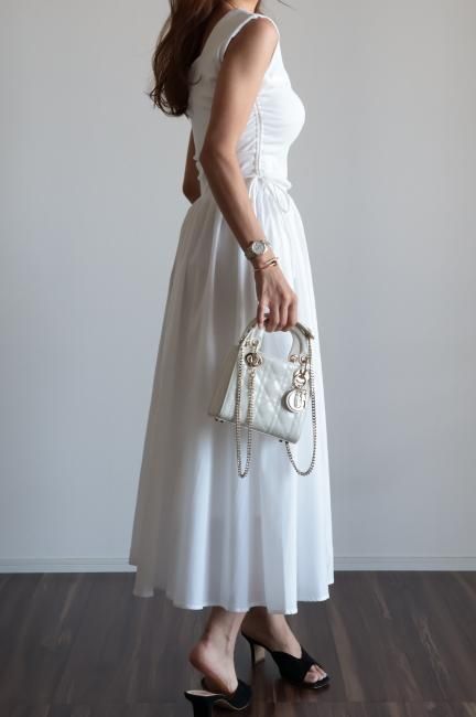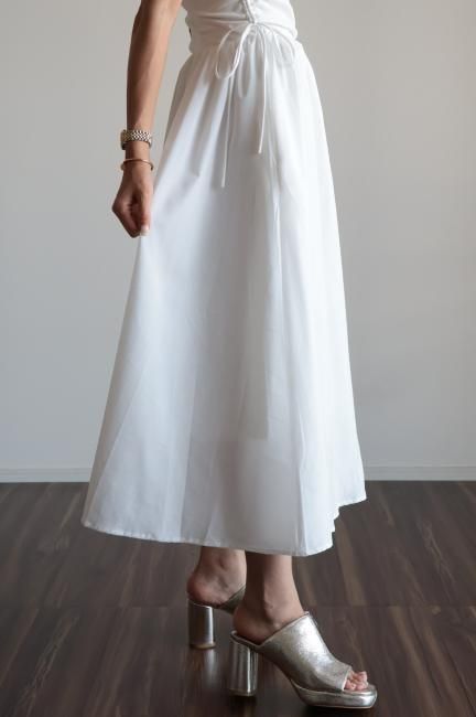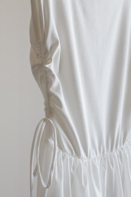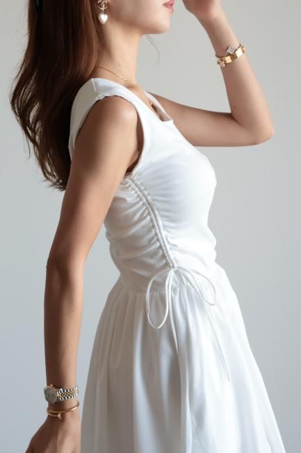 またサイドにはリボンのギャザーがデザインされており、お好きな丈感、シルエットに調節していただけます。