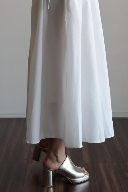 スカート部分はサラッとした張りのある生地感で、ハイウエスト切り替えですので脚長効果もあります。