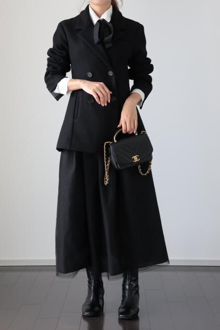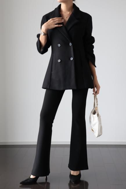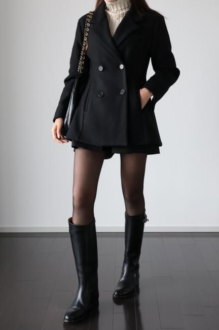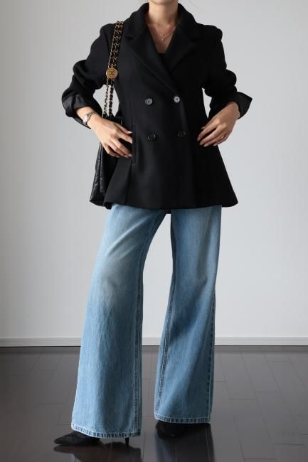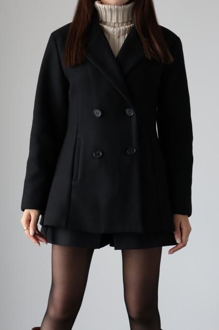 Aラインがポイントになった ダブルブレステッドウールジャケット。