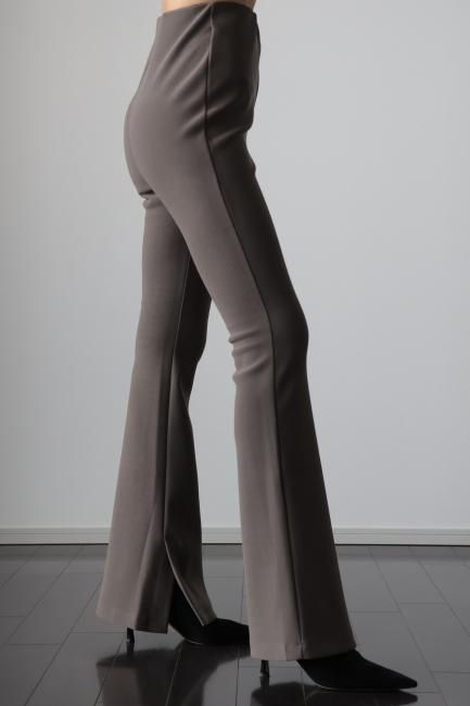 脚長効果と補正効果を兼ね備えたスーパーストレッチフレアパンツ。