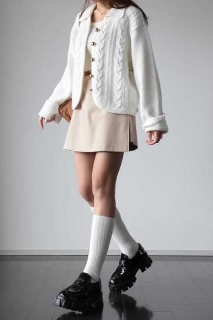 gold button cable knit cardigan / white
