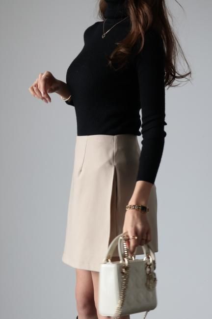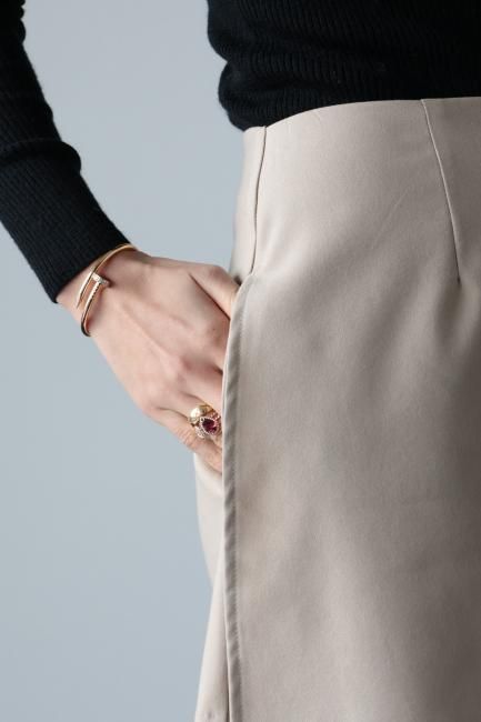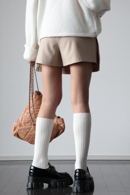 春夏にはTシャツやタンクトップにサンダルやスニーカーを合わせたり、秋冬にはタートルネックやニット、ブラウスなどに、靴下タイツを合わせてブーツやローファー合わせなど、シーズンレスで様々なスタイリングをお楽しみいただけるアイテムです。