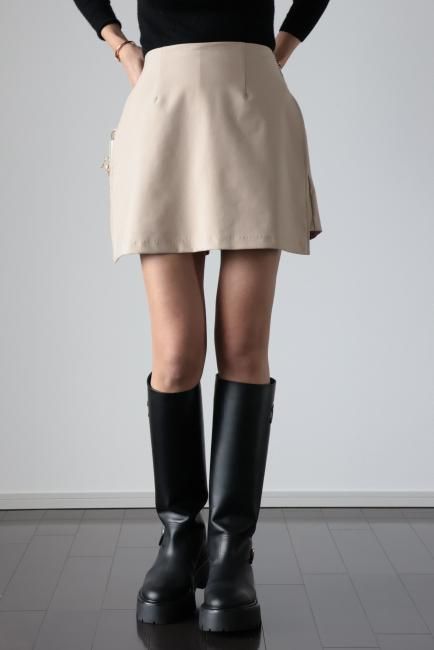 フロントにスカートがドッキングしたハイウエストキュロットパンツ。