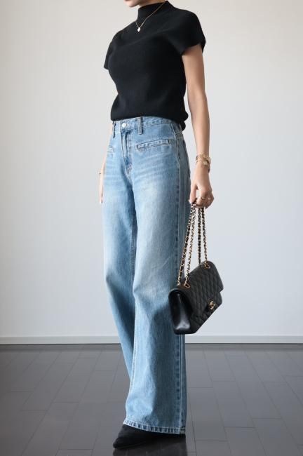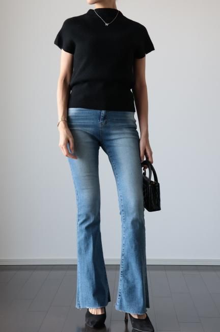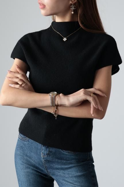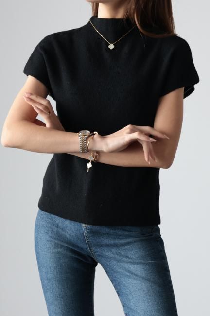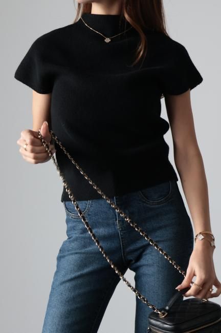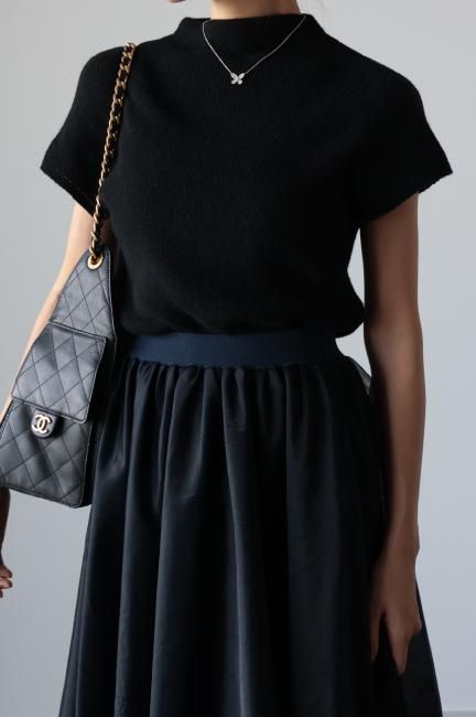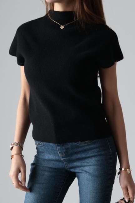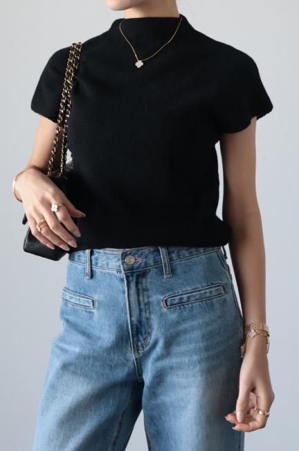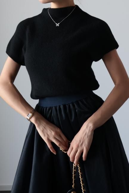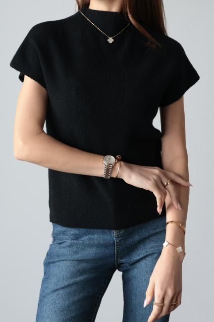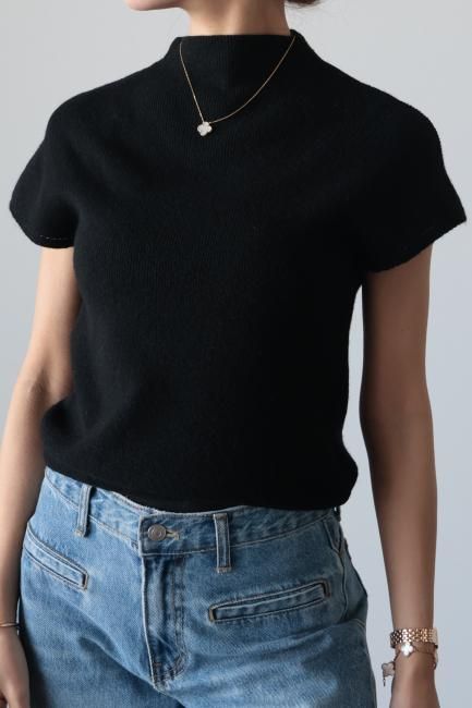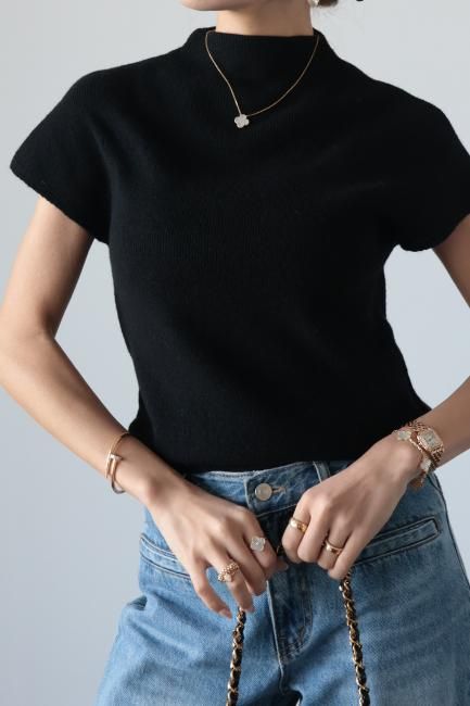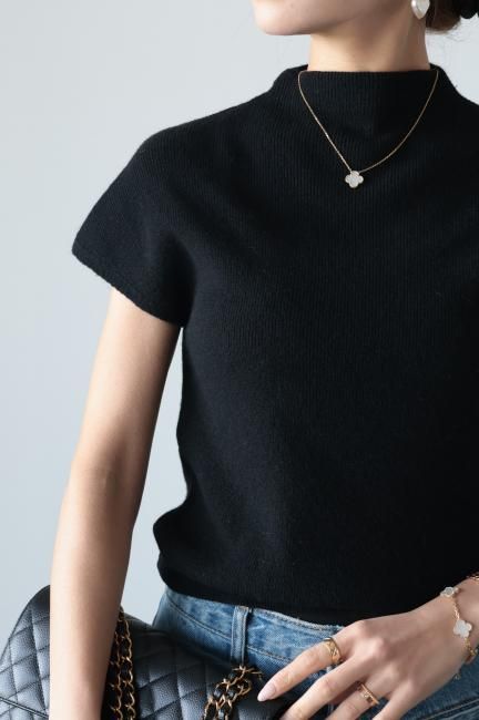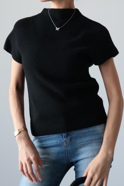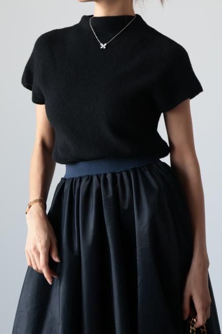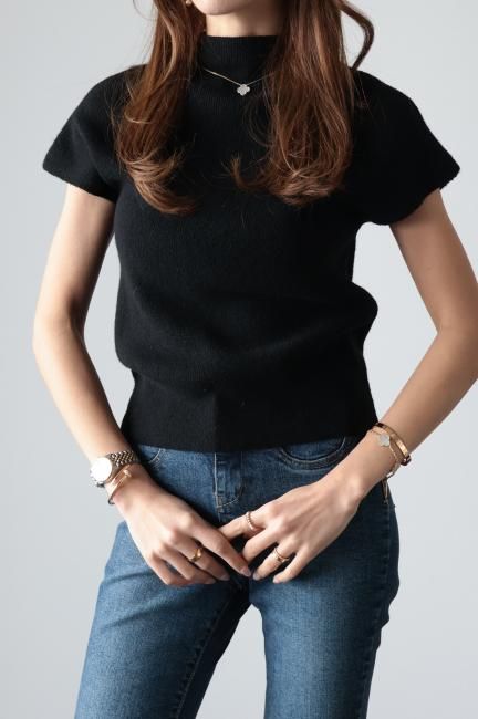モックネックにフレンチスリーブがポイントになっており、着やすさと合わせやすさを兼ね備えた、