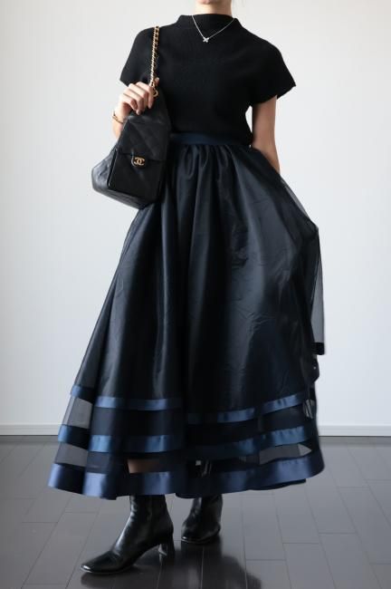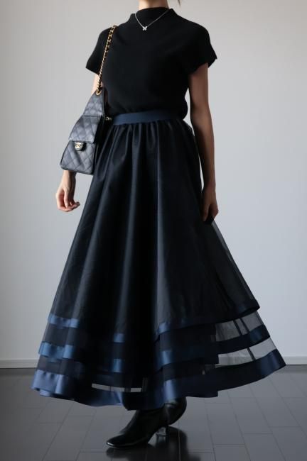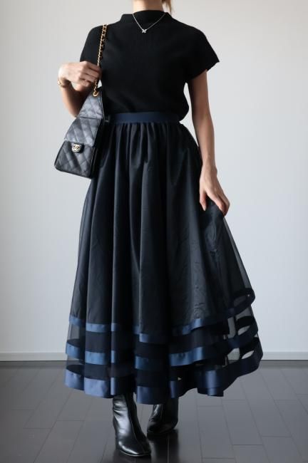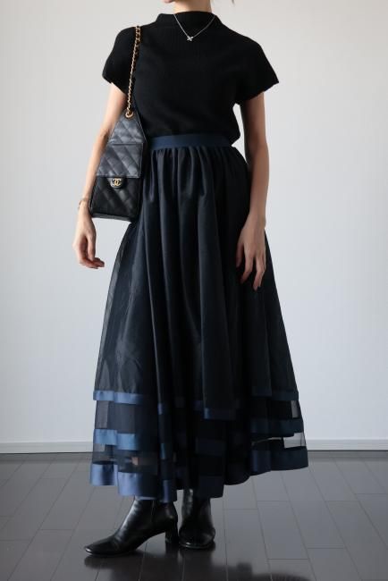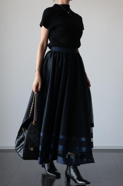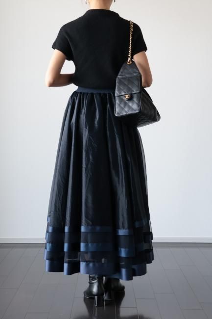 【MAISEL】satin piping layered tulle skirt / navy