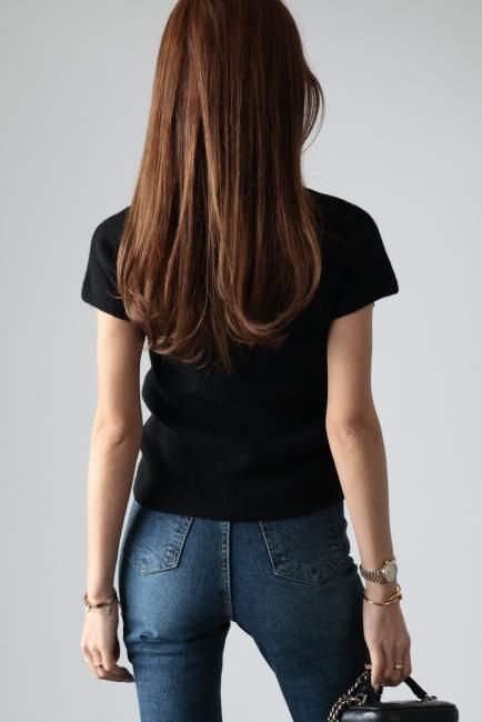 上質なカシミアがmixされたとても肌触りの良い伸縮性のあるウールニットトップス。