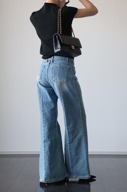 high waist flare cut denim pants / blue