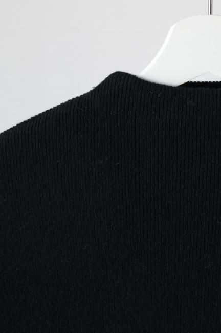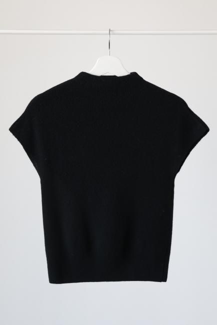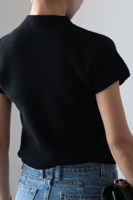 mock neck cashmere mix rib knit top / black