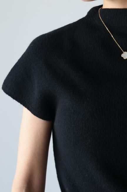 カシミア混モックネックリブニットトップ