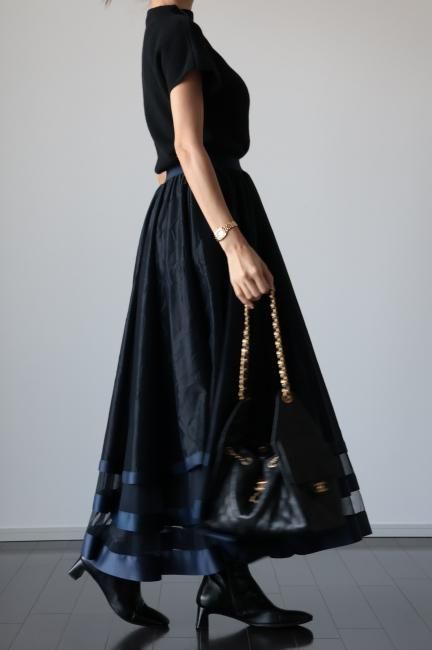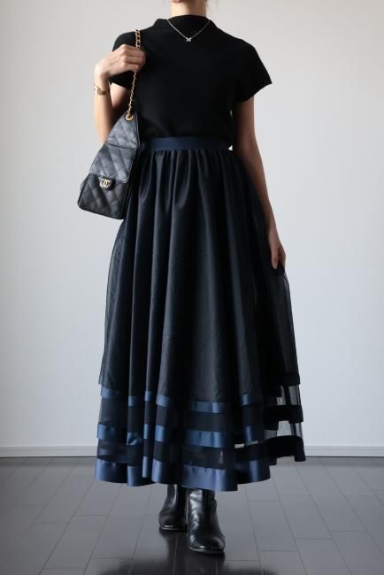 【MAISEL】satin piping layered tulle skirt / black