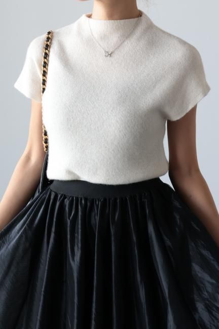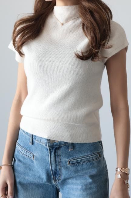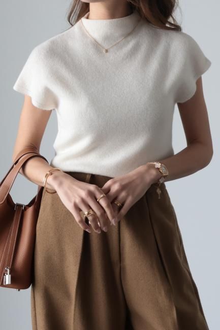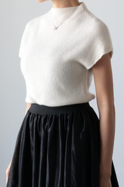 モックネックにフレンチスリーブがポイントになっており、着やすさと合わせやすさを兼ね備えた、