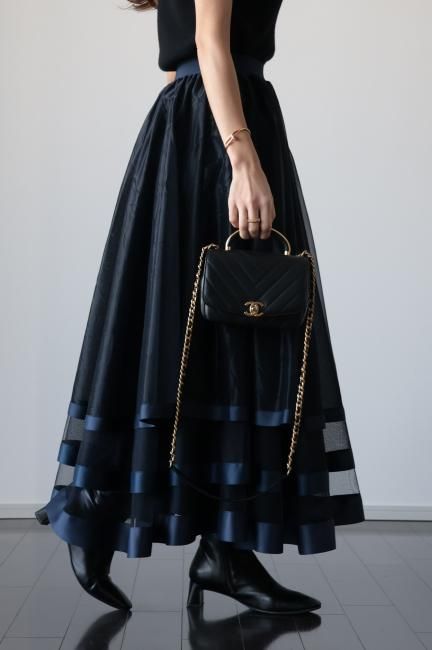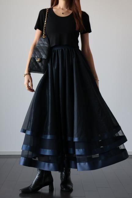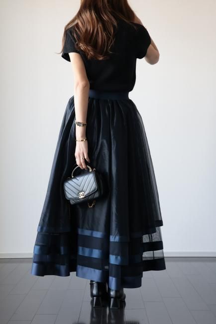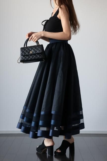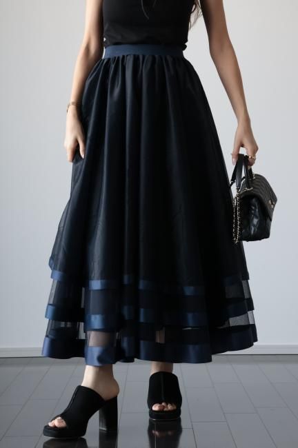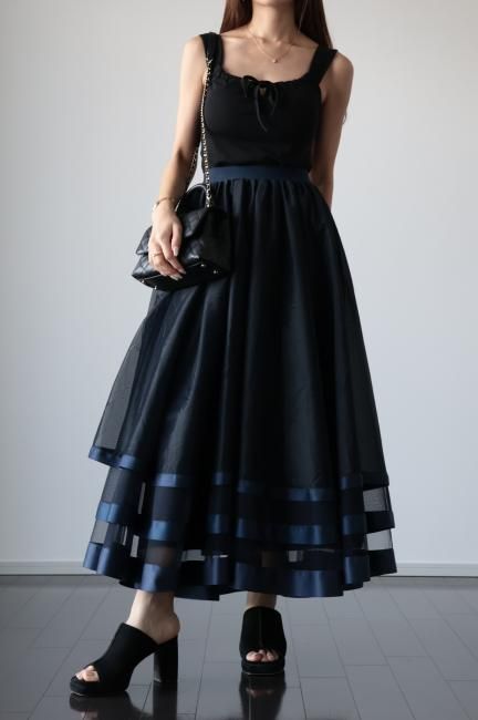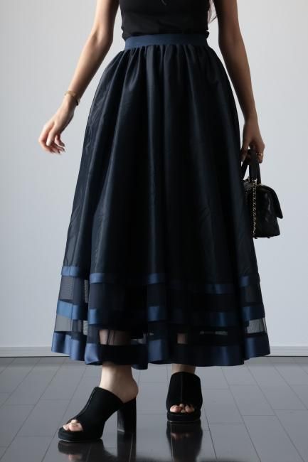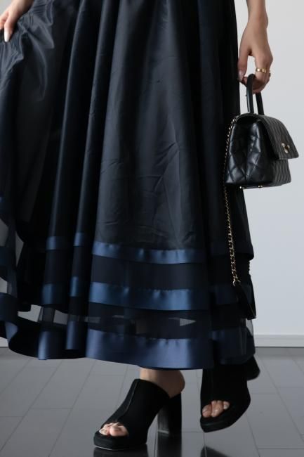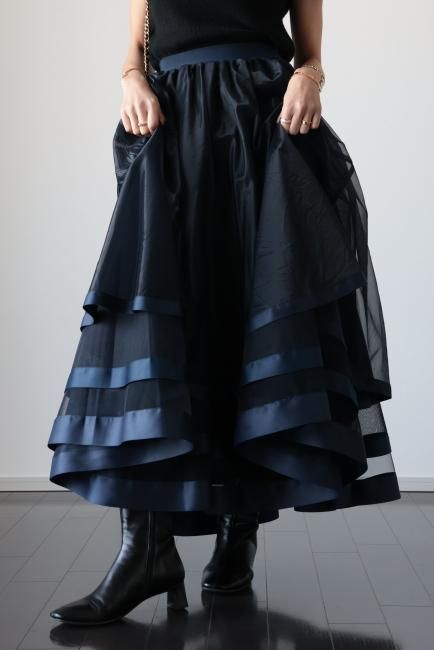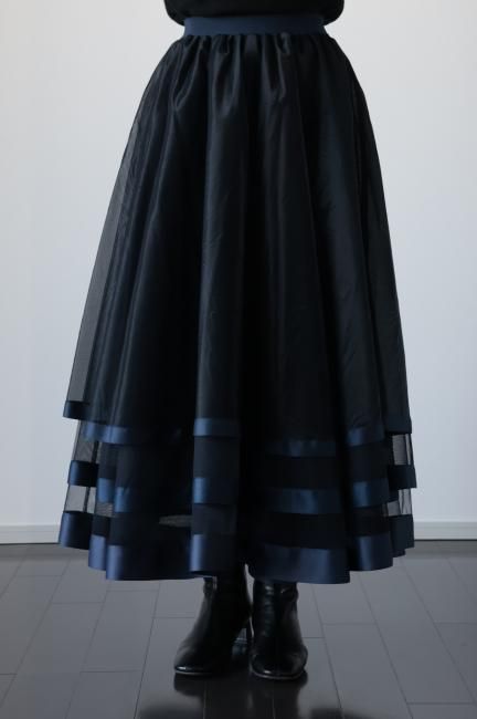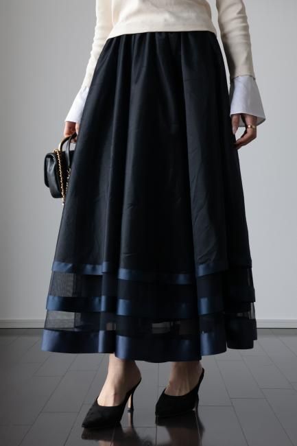 【MAISEL】satin piping layered tulle skirt / navy