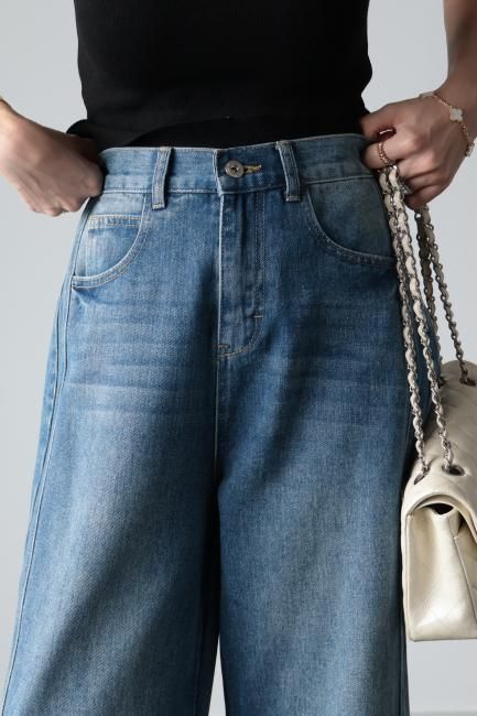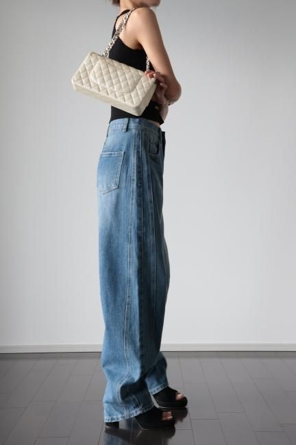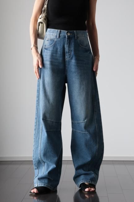 カーブデザインが目を惹くカーブシルエットウォッシュワイドデニム。