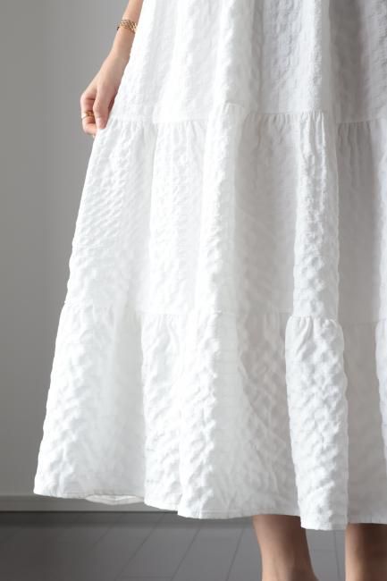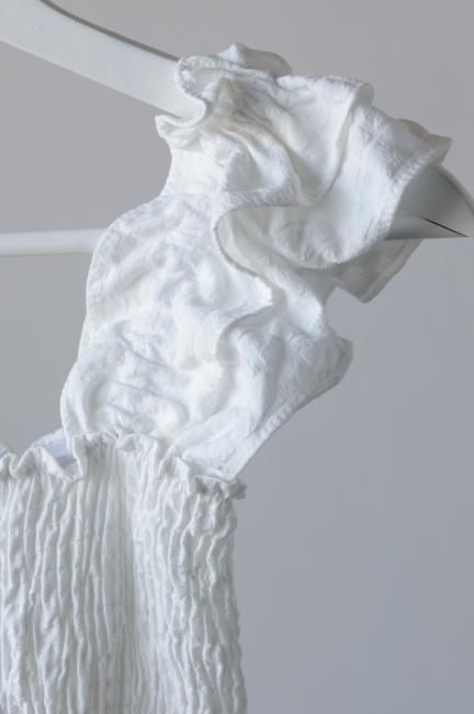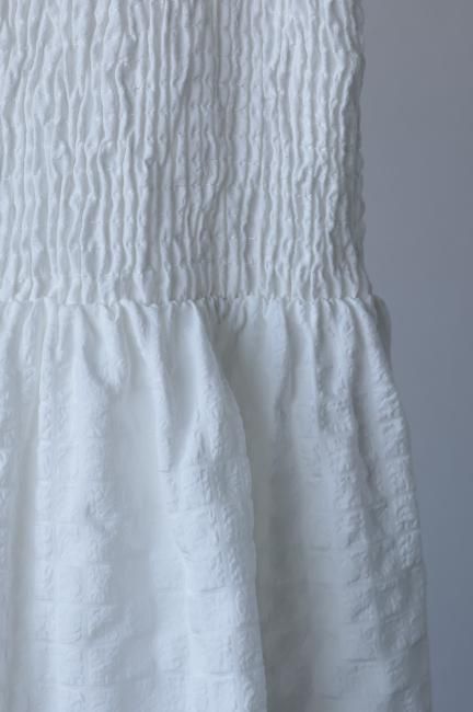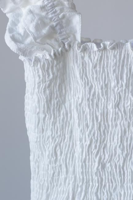 エンボス加工が施されたハリのある生地を使用しておりますので表面に凹凸があり、肌に触れる接着面が少ないため夏にも涼しくお召しいただけます。