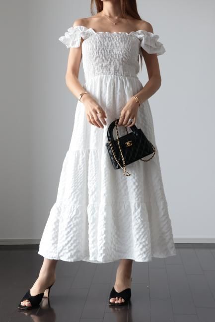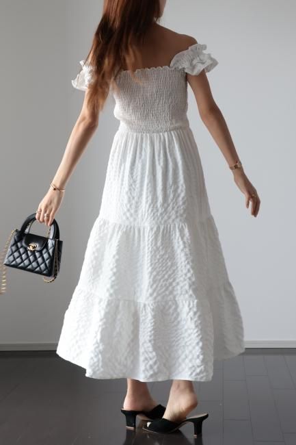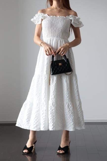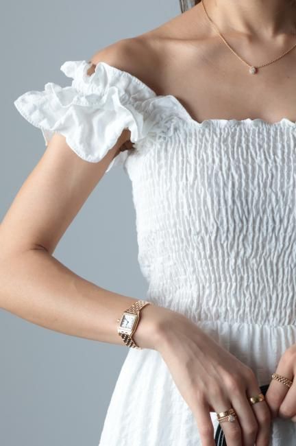 肩を落としてオフショルダーにしてもまた違った雰囲気でお召しいただけます。