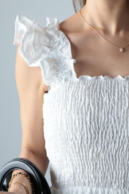 肩のフリルは立体的な二重構造になっており、ボリューム感に加え、レディーな雰囲気を演出してくれます。