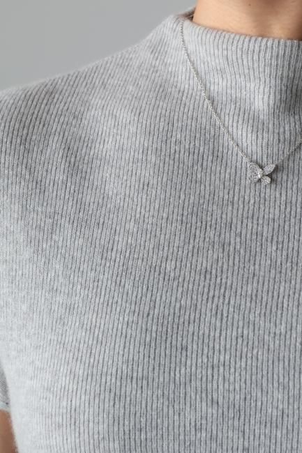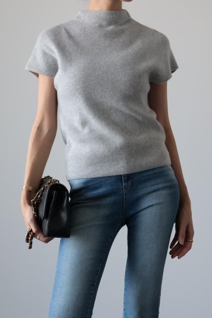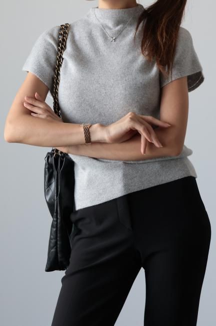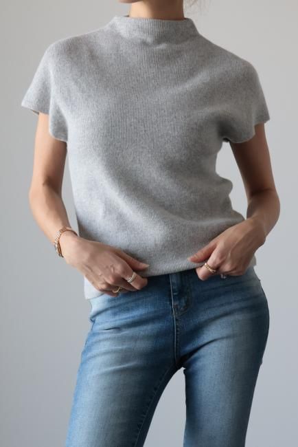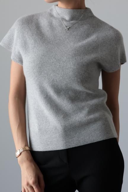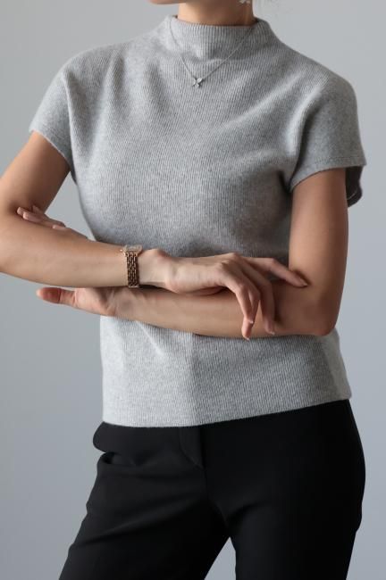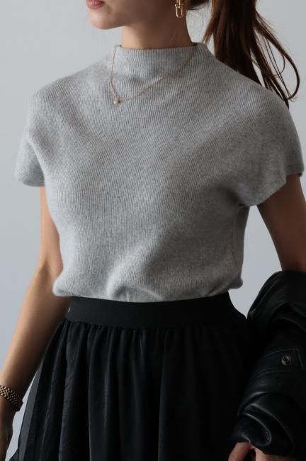 上質なカシミアがmixされたとても肌触りの良い伸縮性のあるウールニットトップスに新色のグレーが登場。