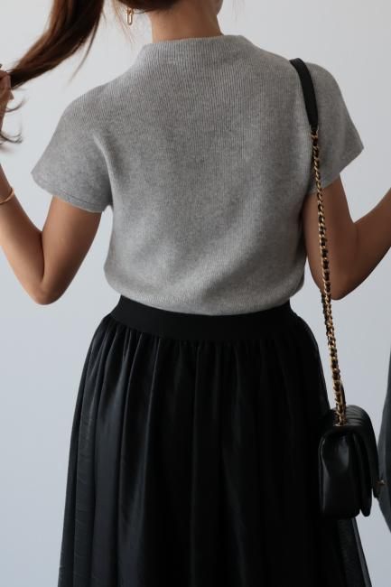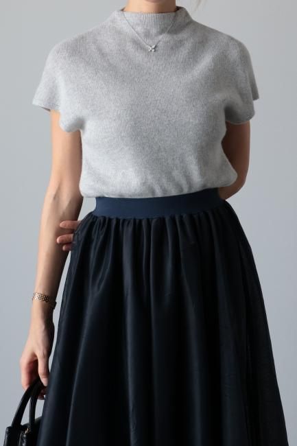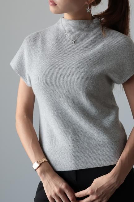 モックネックにフレンチスリーブがポイントになっており、着やすさと合わせやすさを兼ね備えた、