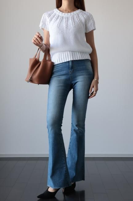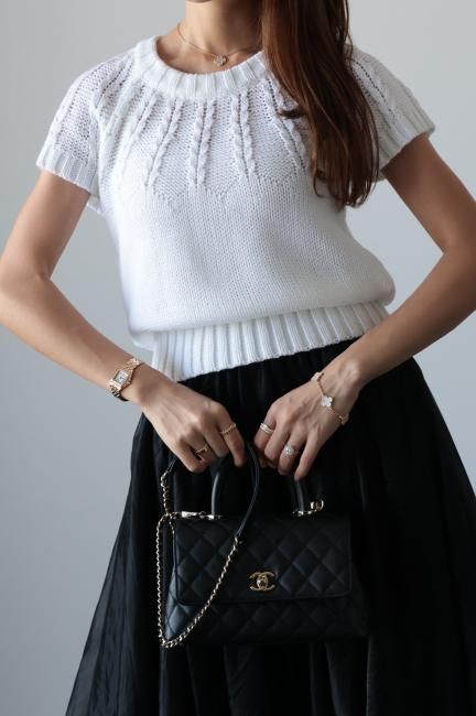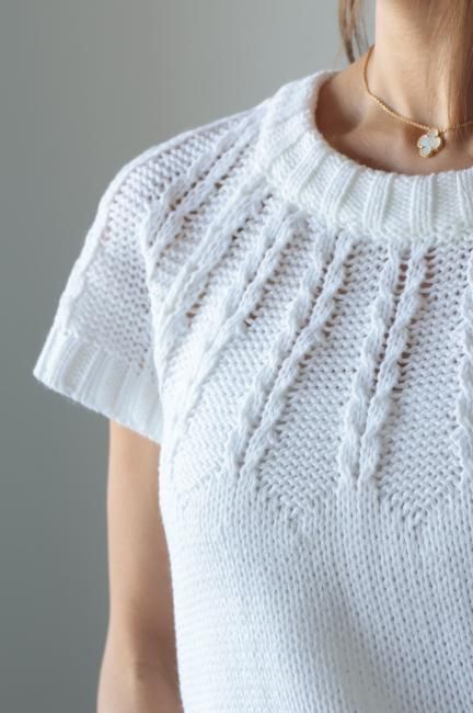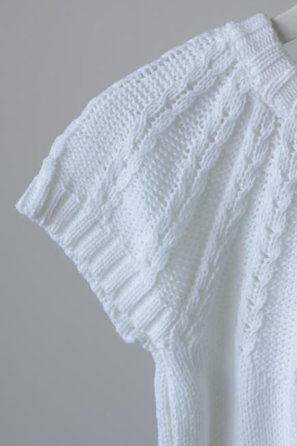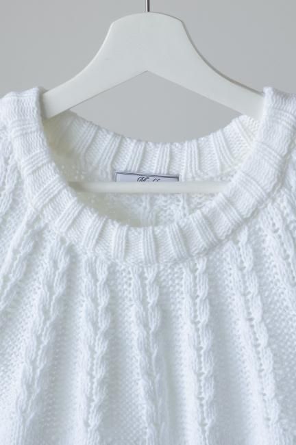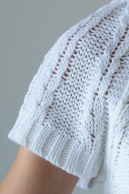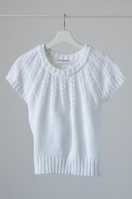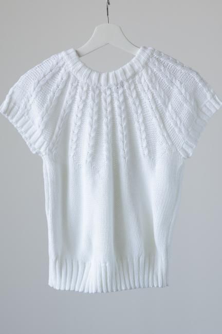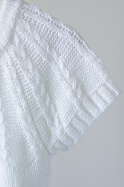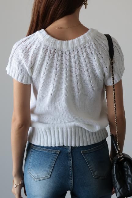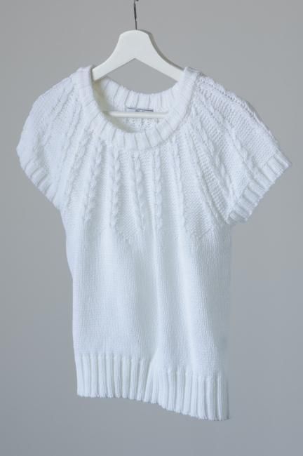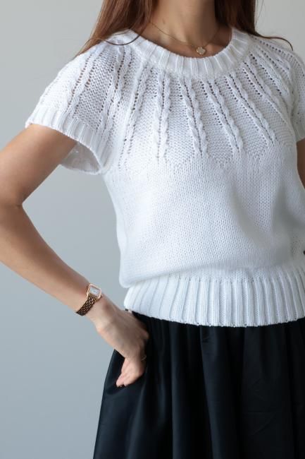 short sleeves cable knit top / white